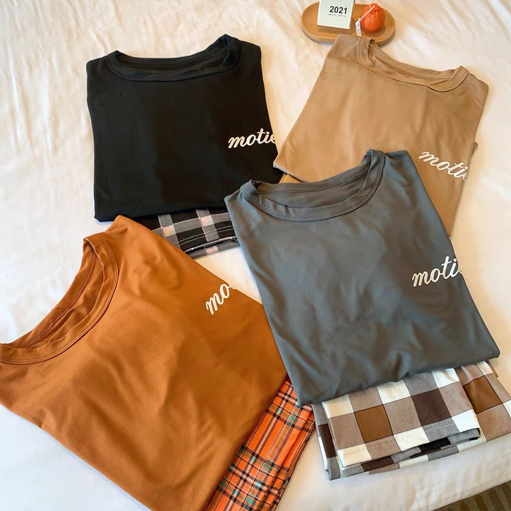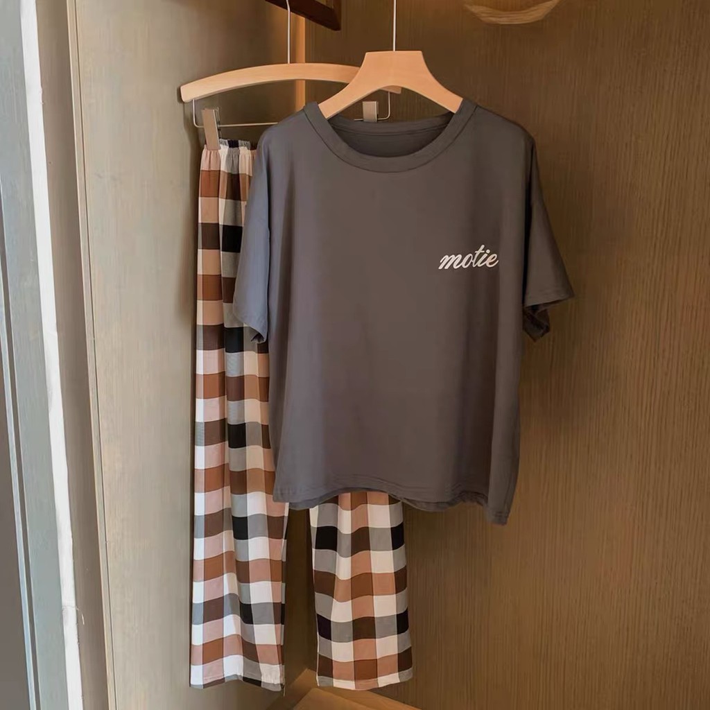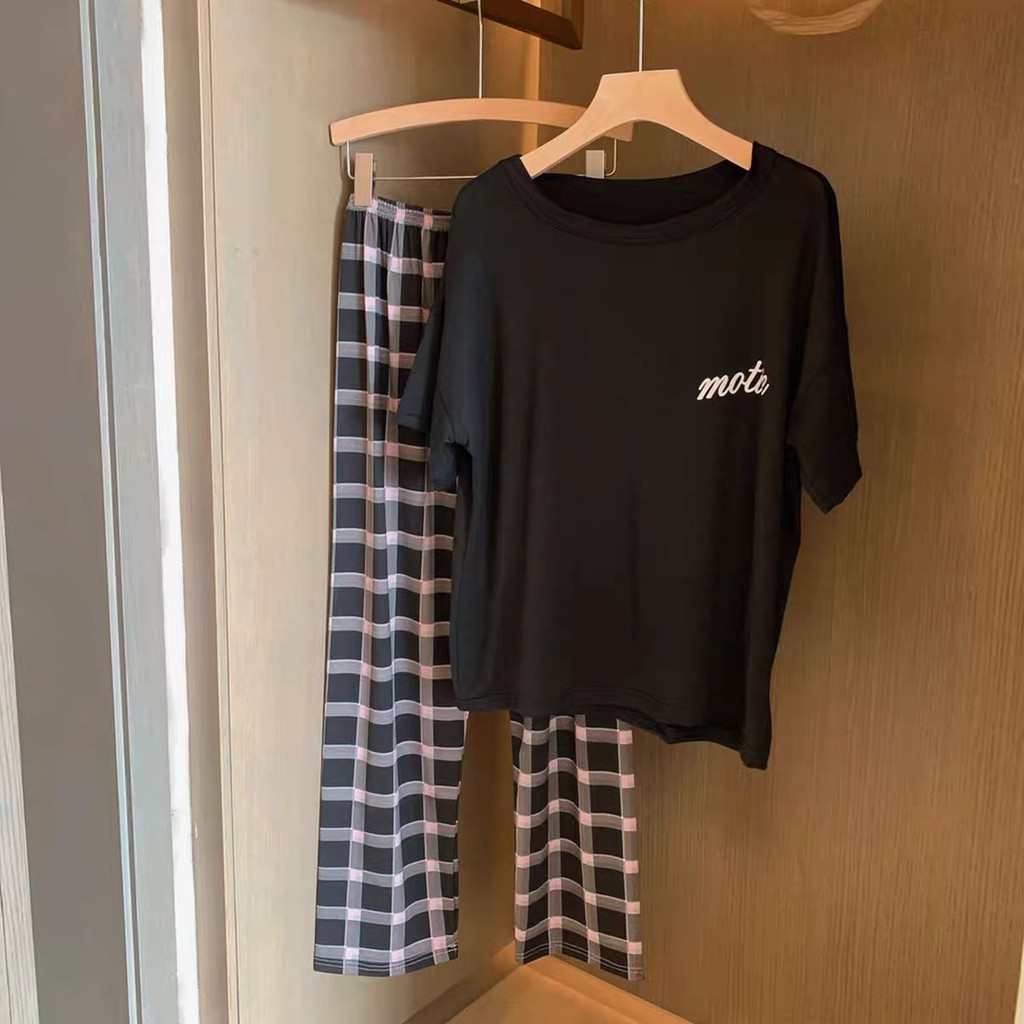 Cicishop(C2377)เซตเสื้อยืด+กางเกงขายาวสกรีนลาย ผ้านิ่มใส่สบาย ใส่ชิลๆหรือใส่นอนชิคมากๆ