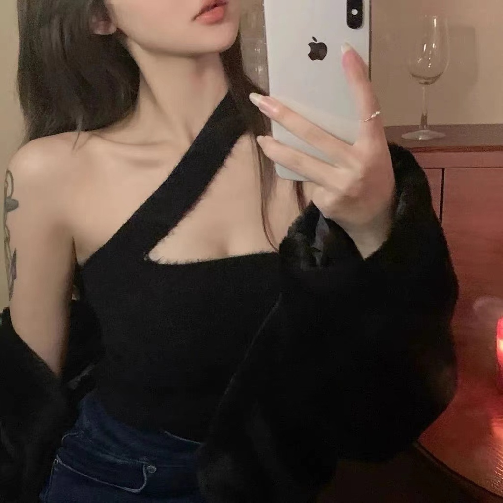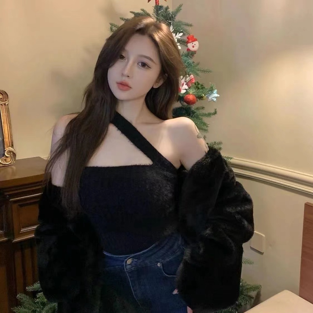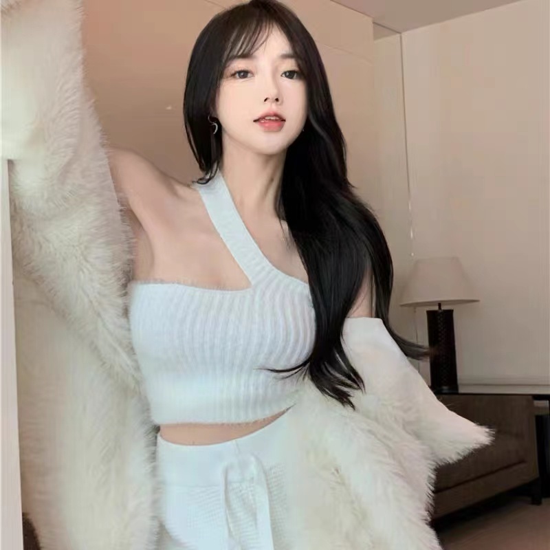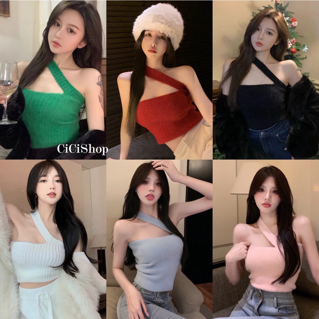 Cicishop(8348)เสื้อสายเดี่ยวขนมิ้งดีเทล ไขว้อกเนื้อผ้านุ่มมาก ใส่สบาย ใส่กับอะไรก็สวยจ้า