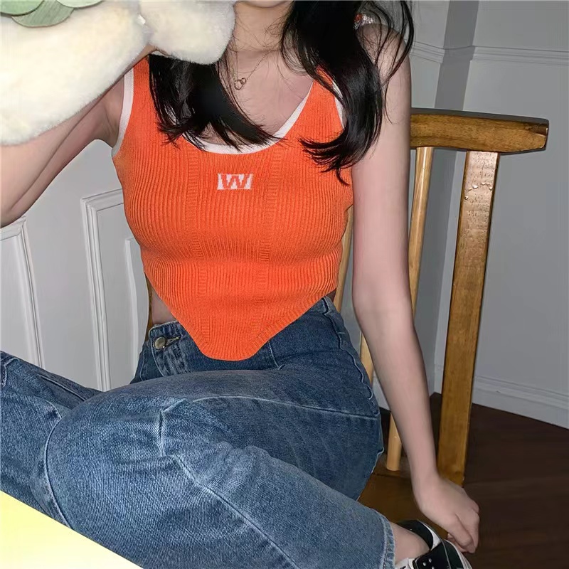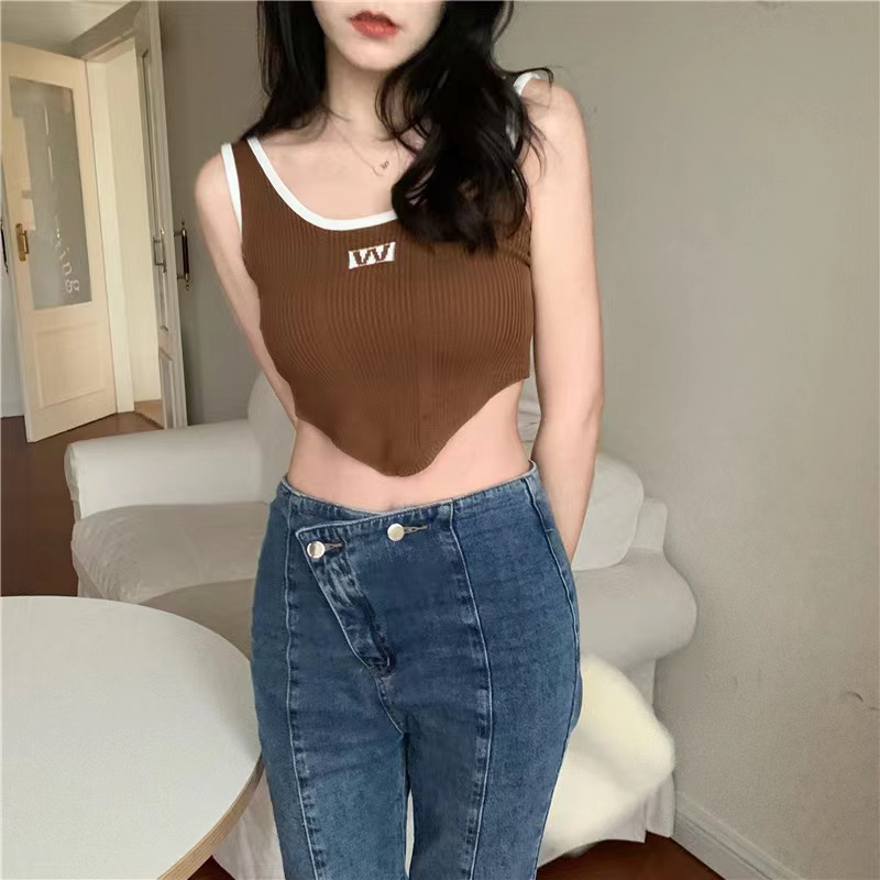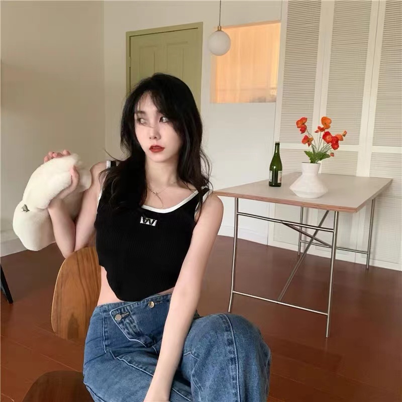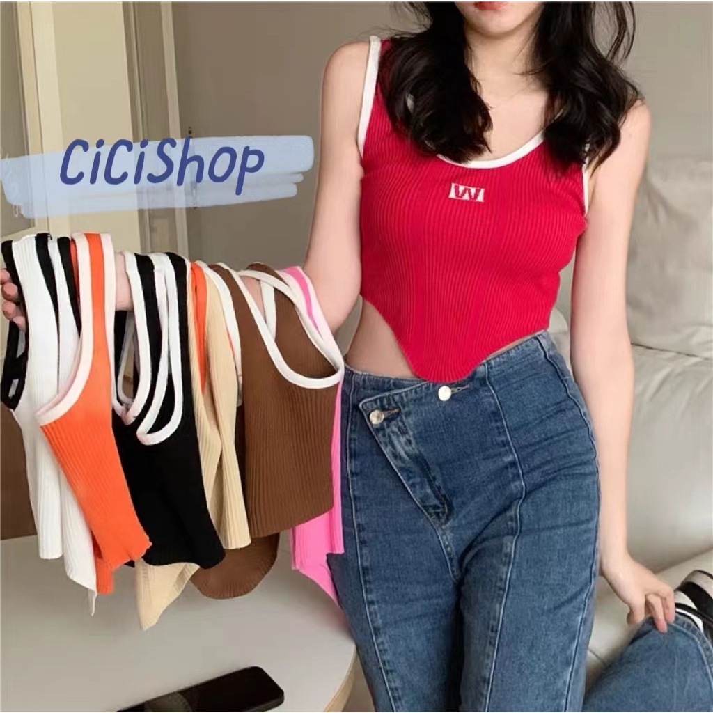 Cicishop(59200)เสื้อสายเดี่ยว ผ้าไหมพรมร่อง ดีเทลชายเสื้อโค้ง สีสีนสดใจ ผ้านุ่มใส่สบาย แมทง่ายใส่ได้กับทุกชุด