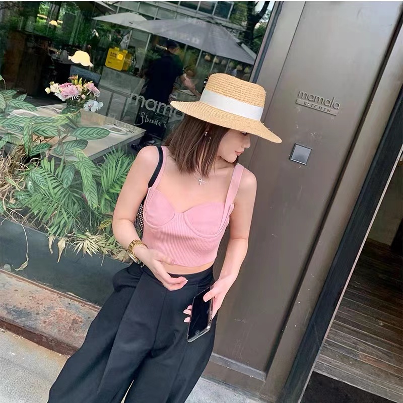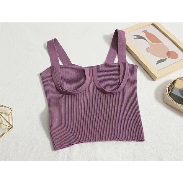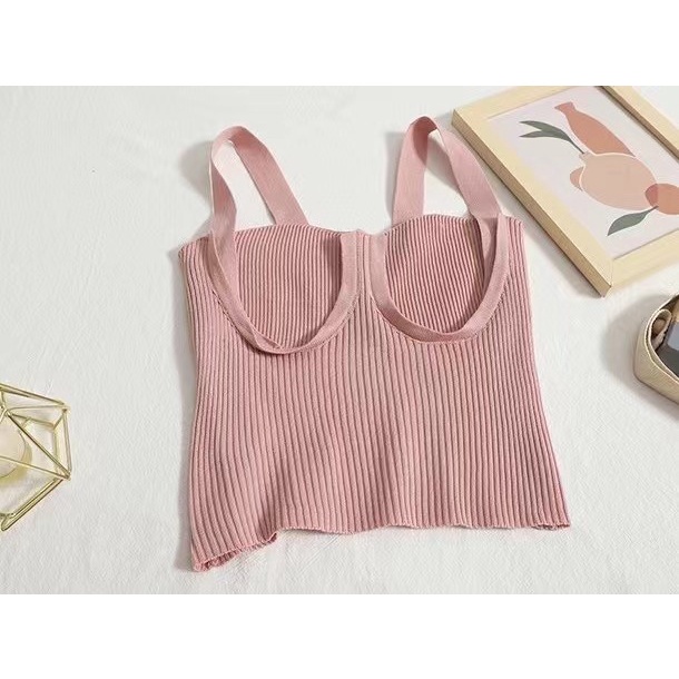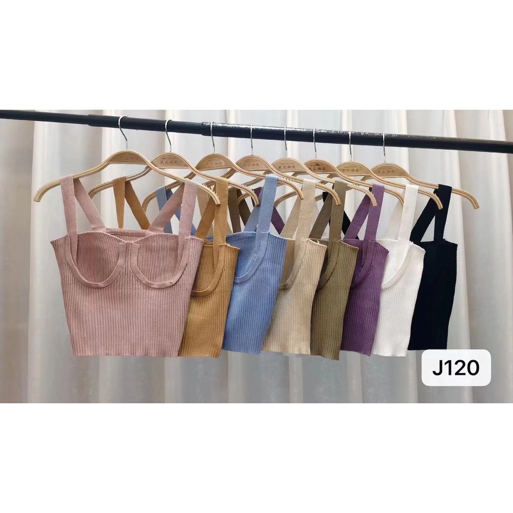 Cicishop(J120)เสื้อสายเดี่ยวไหมพรม ทรงครอปผ้าร่องสายฝอ สุดพลัง ปังเซ็กซี่มาก