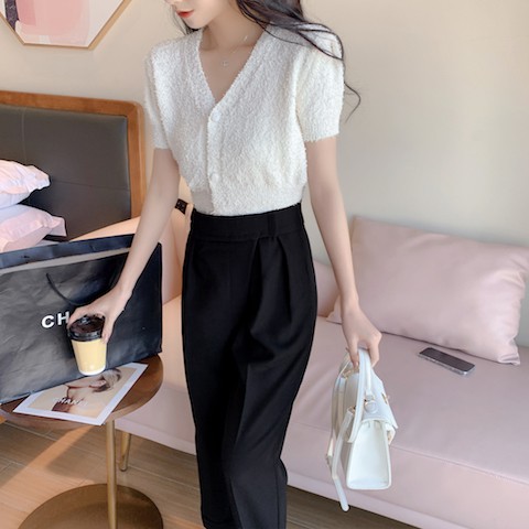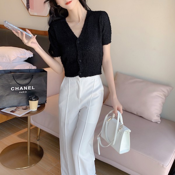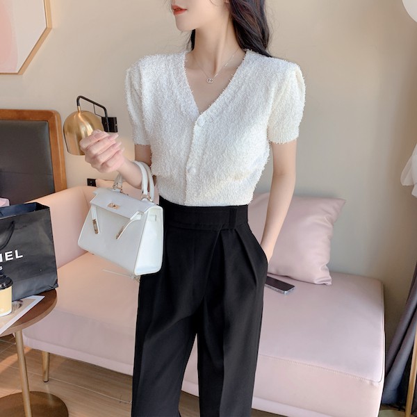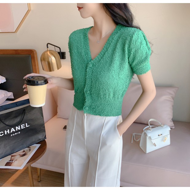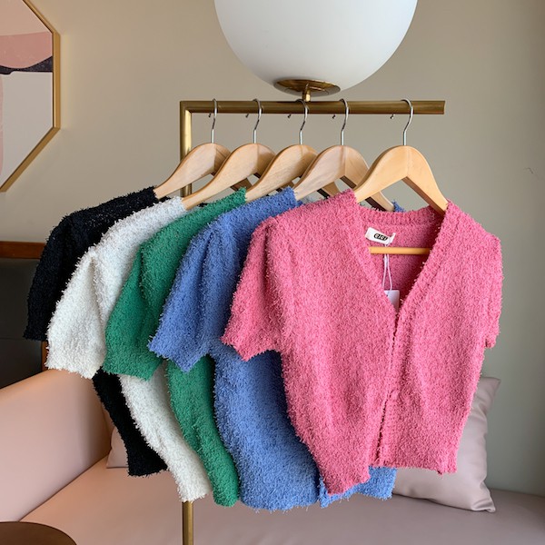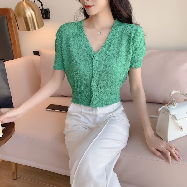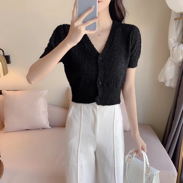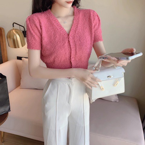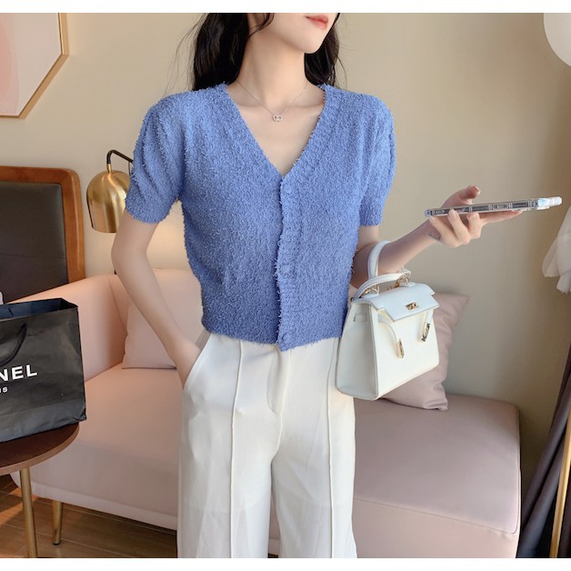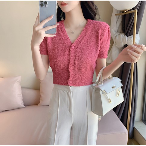 Cicishop(SALE/สุ่ม 2426)เสื้อครอปไหมพรมคอวี เนื้อผ้าเทกเจอร์ขนนุ่มไม่คัน ทรงสวยสุดชิค