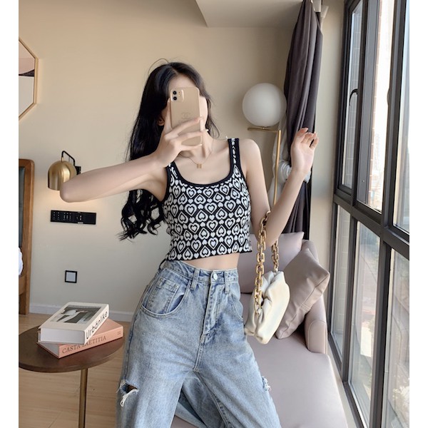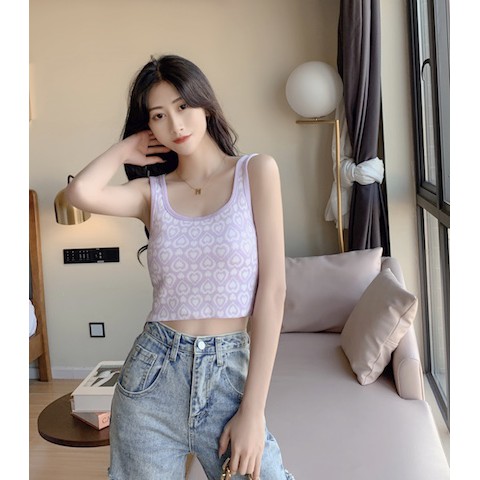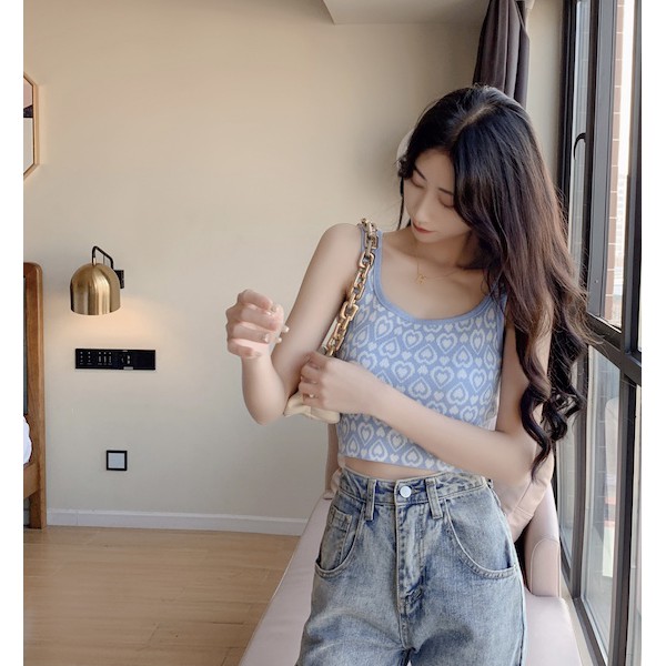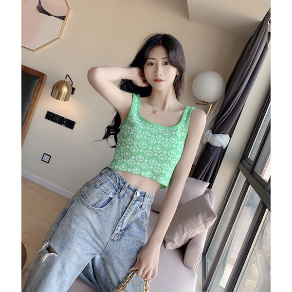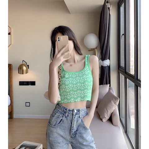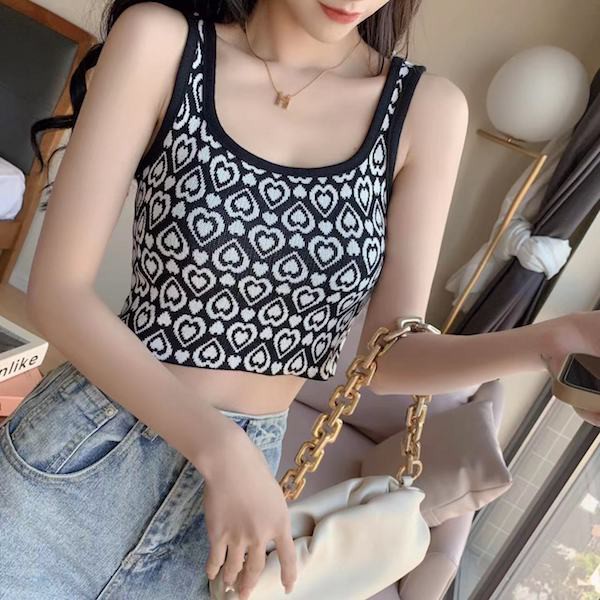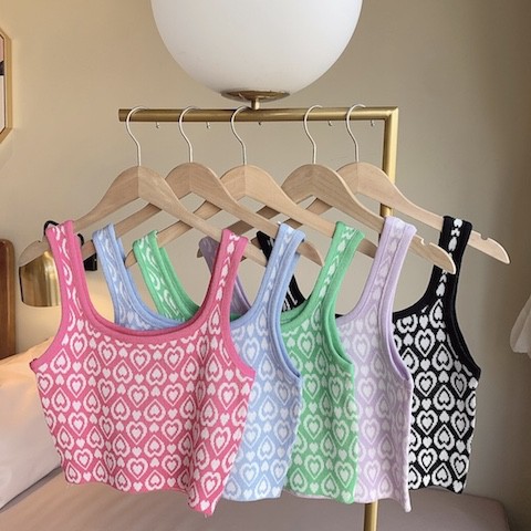 Cicishop(BZ796)เสื้อกล้ามครอปไหมพรมลายหัวใจ ผ้านิ่มยืดได้เยอะ ใส่แมตช์ยีนส์ปังสุดๆ💗