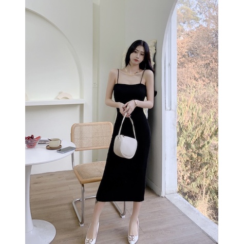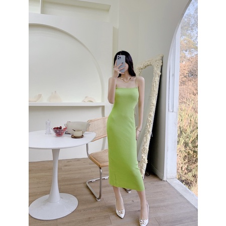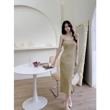 Cicishop(1519)เด รสยาวสายเดี่ยวไหมพรมknit ทอร่องเล็ก เก็บทรงสวยเป๊ะมากๆ
