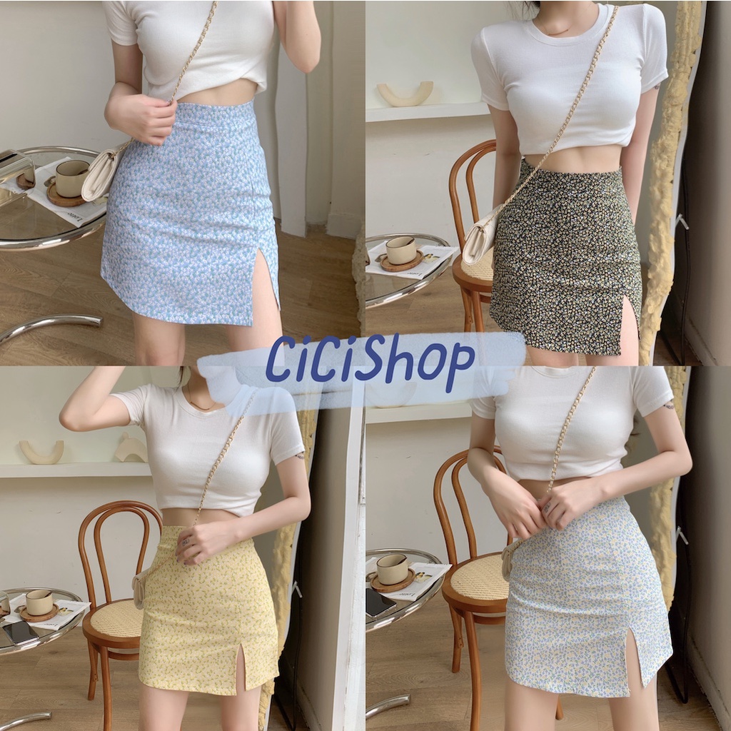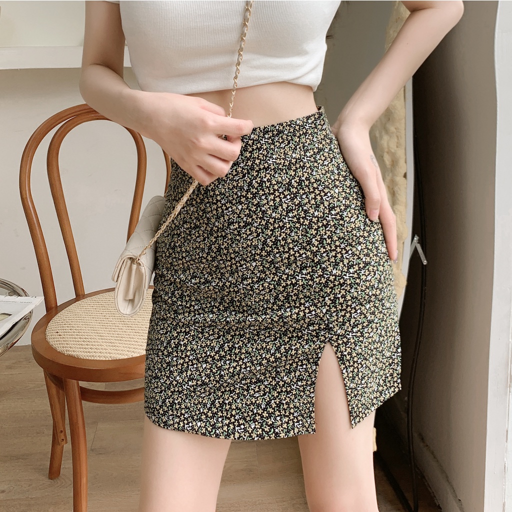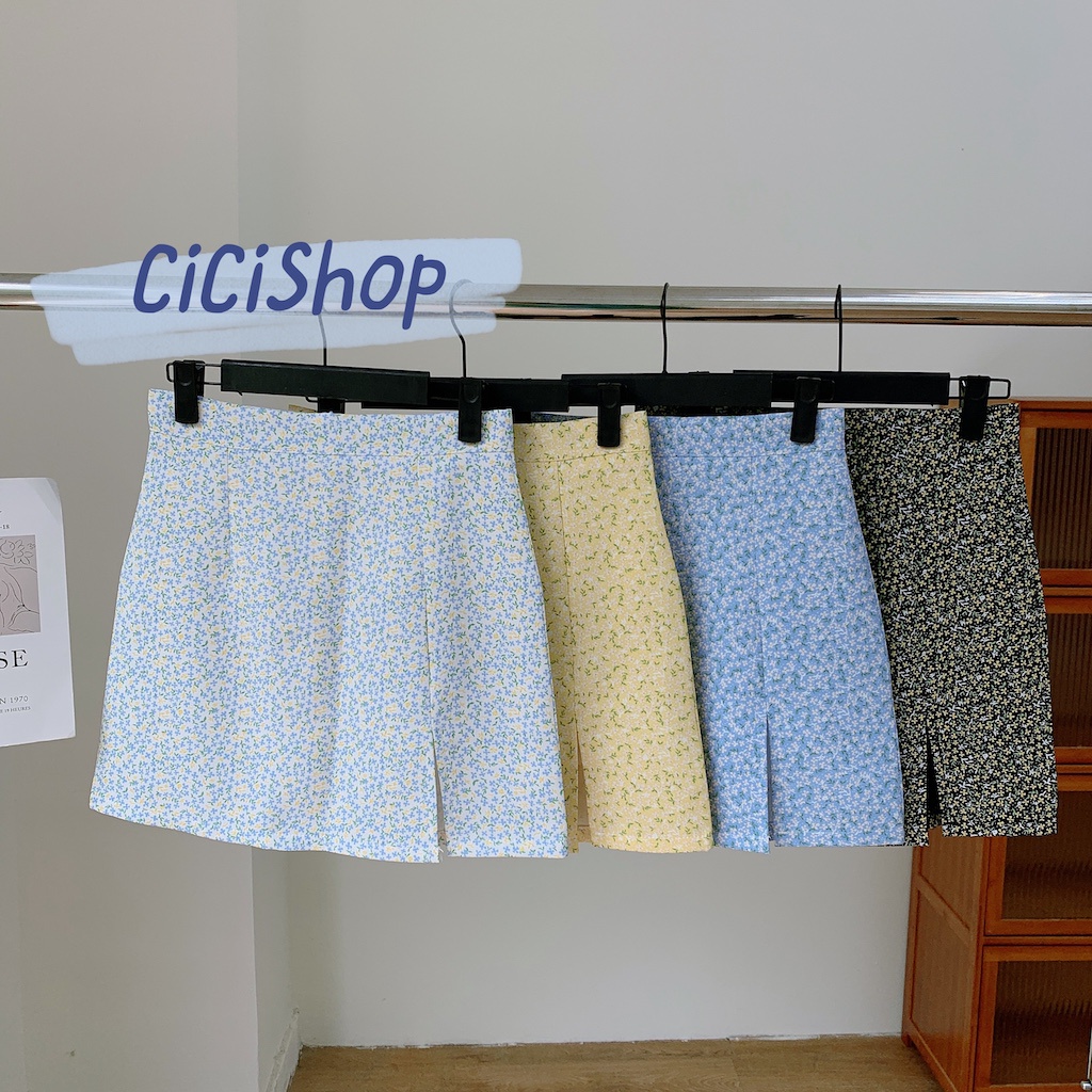 Cicishop(Q2151)กระโปรงทรงเอลายดอกไม้ แหวกข้าง สไตล์เกาหลีน่ารักสุดๆ