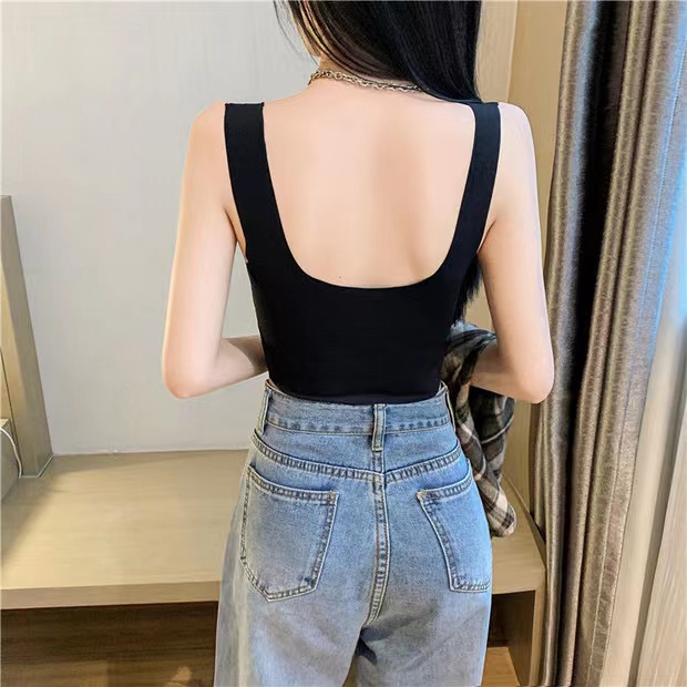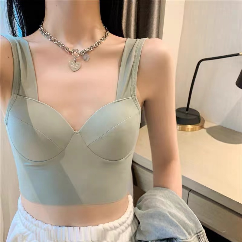 Cicishop(2208)เสื้อกล้าม Crop ผ้านิ่ม มีฟองน้ำในตัว ผ้าลื่นมาก เข้ารูปกระชับ