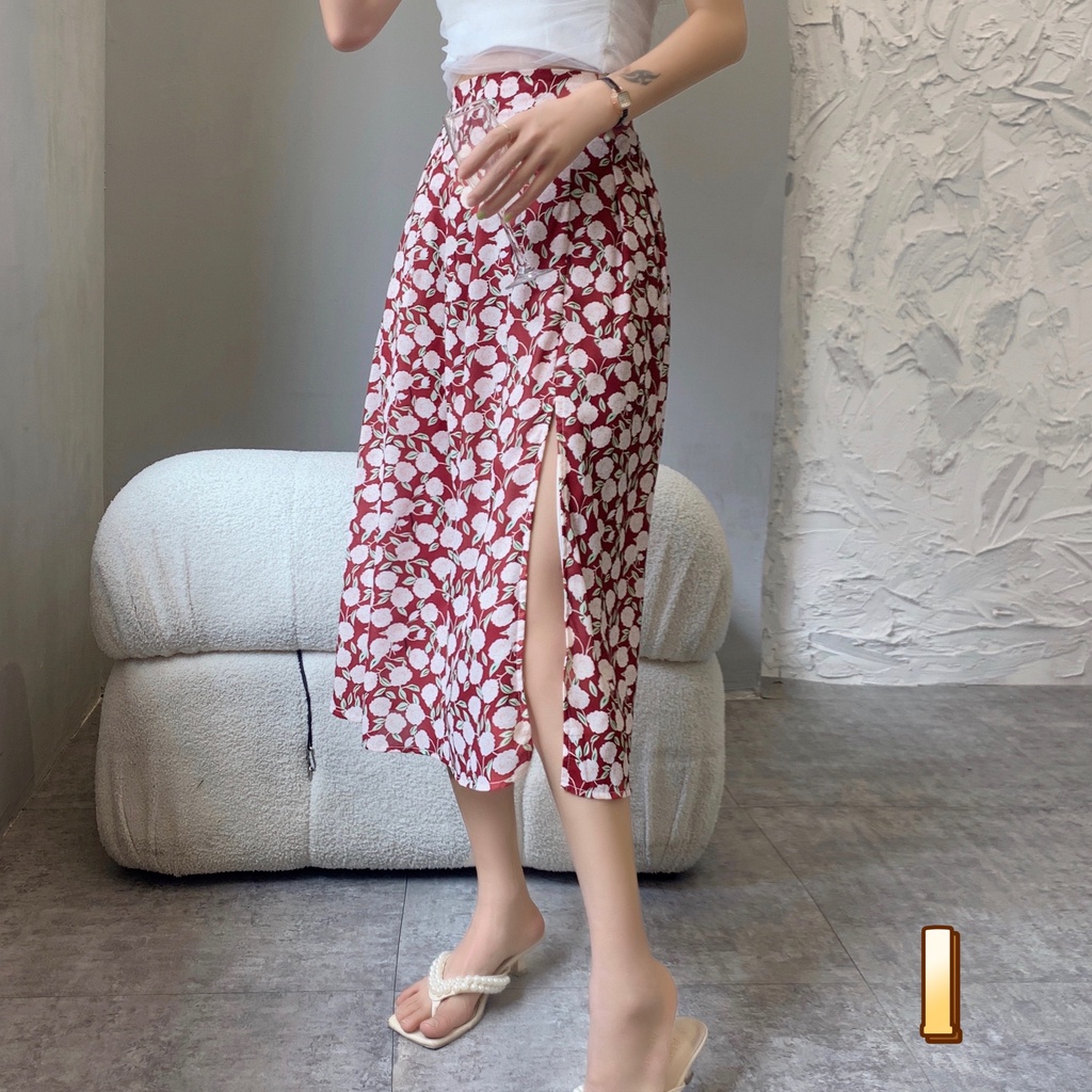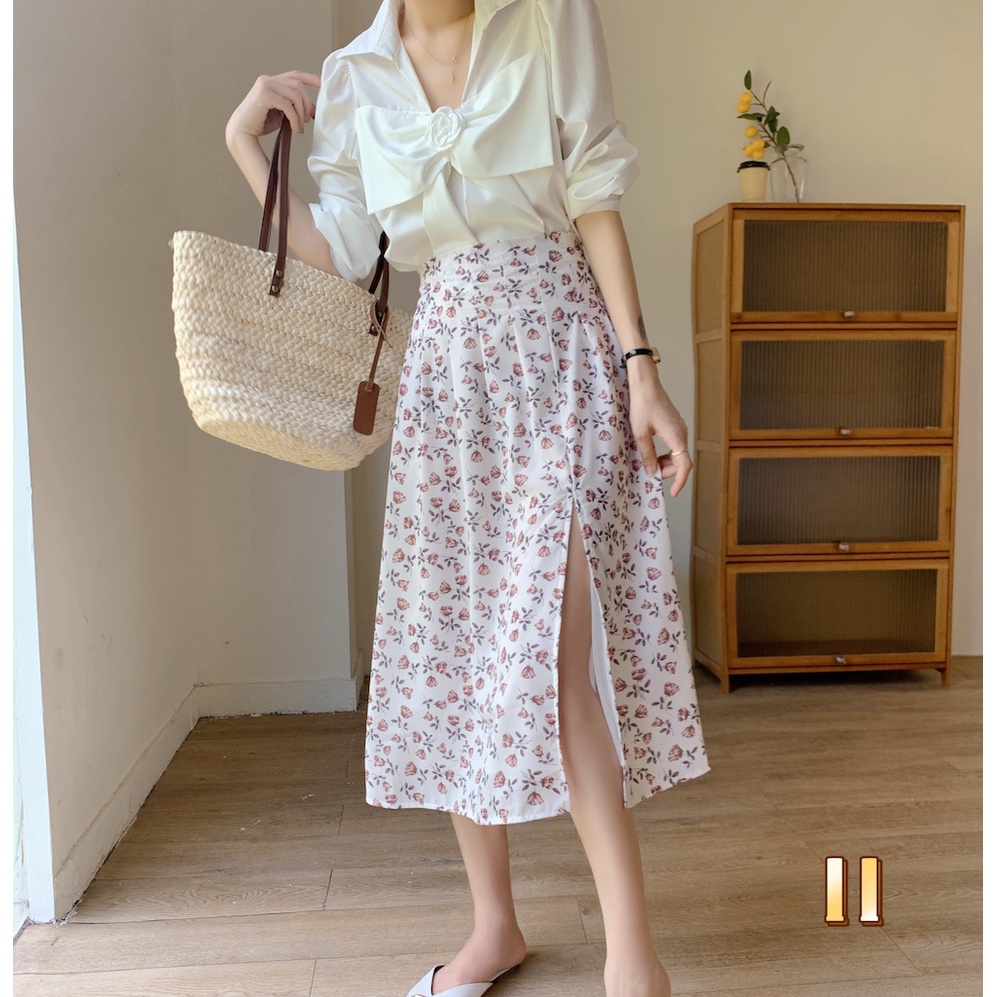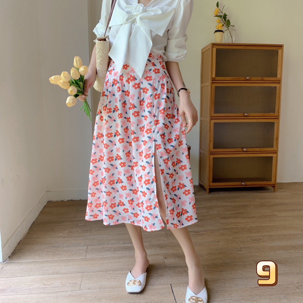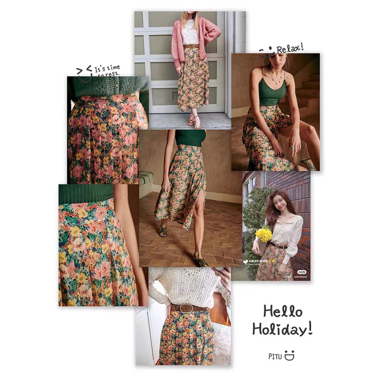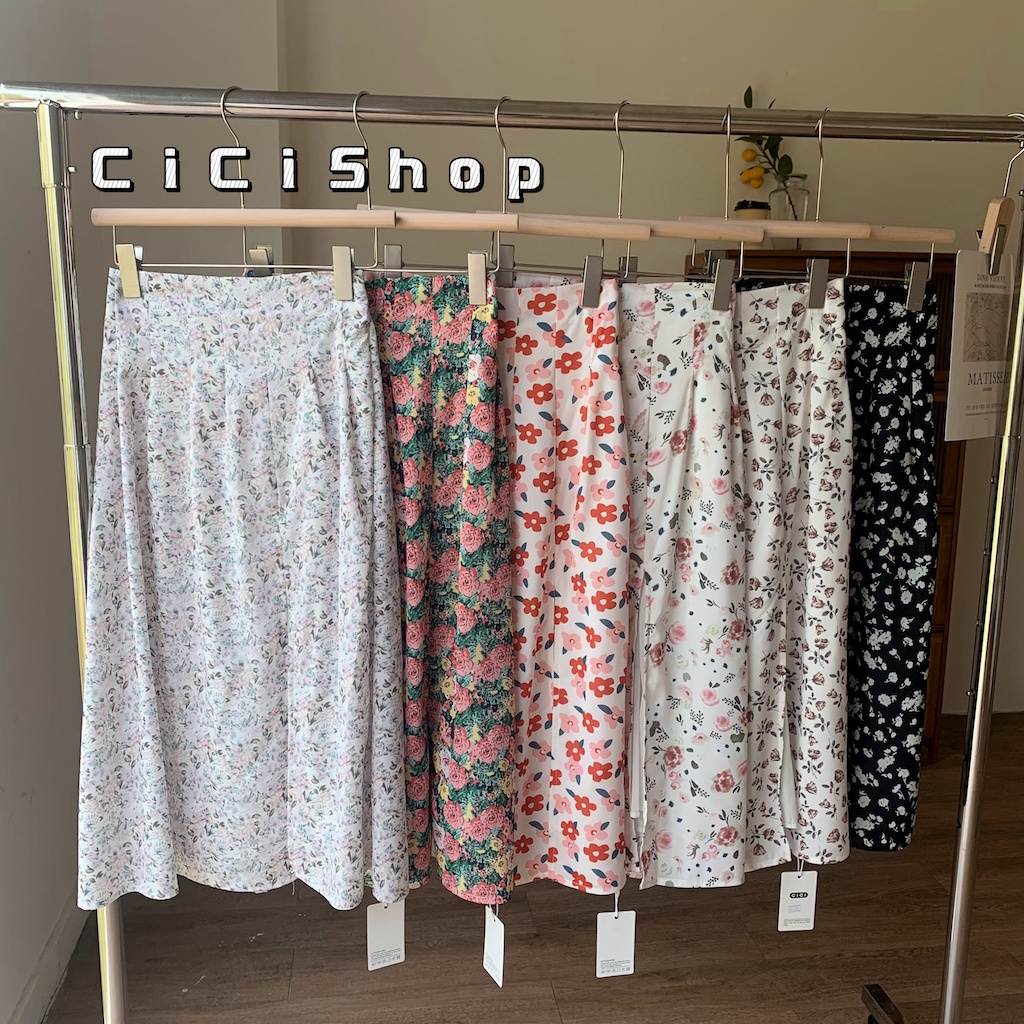 Cicishop(0223)กระโปรงยาว ลายดอกไม้🌷🌹 ผ่าข้าง เอวสม็อค มีซับใน ใส่แล้วดูผอมเพรียว กำลังมาแรง สไตล์เรโทร