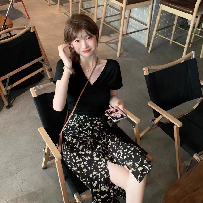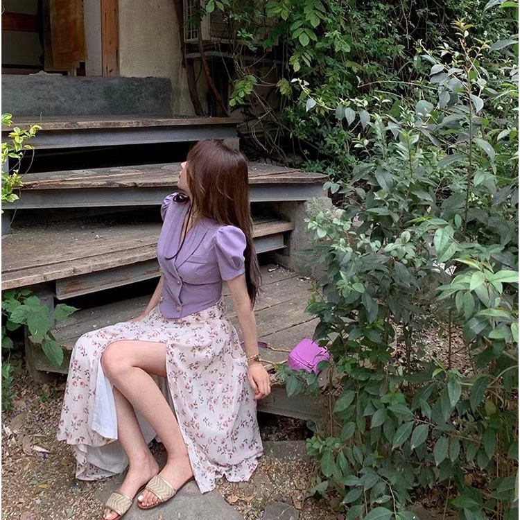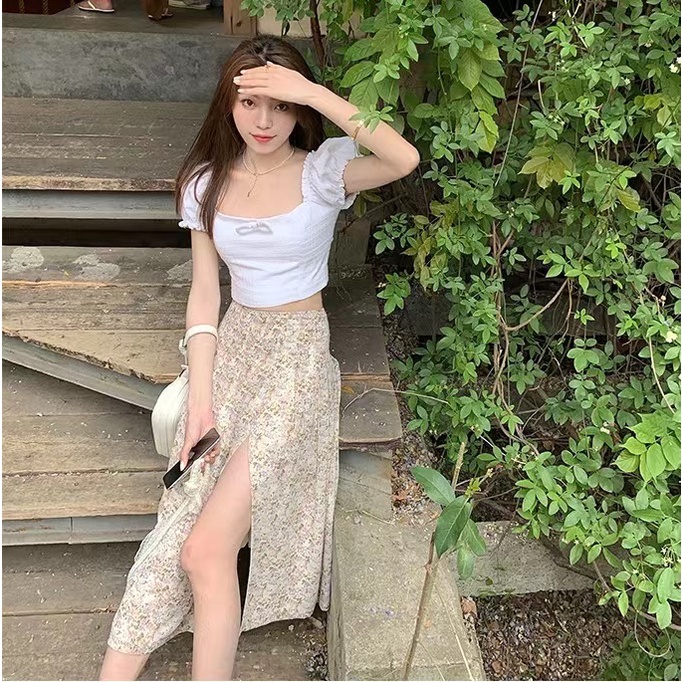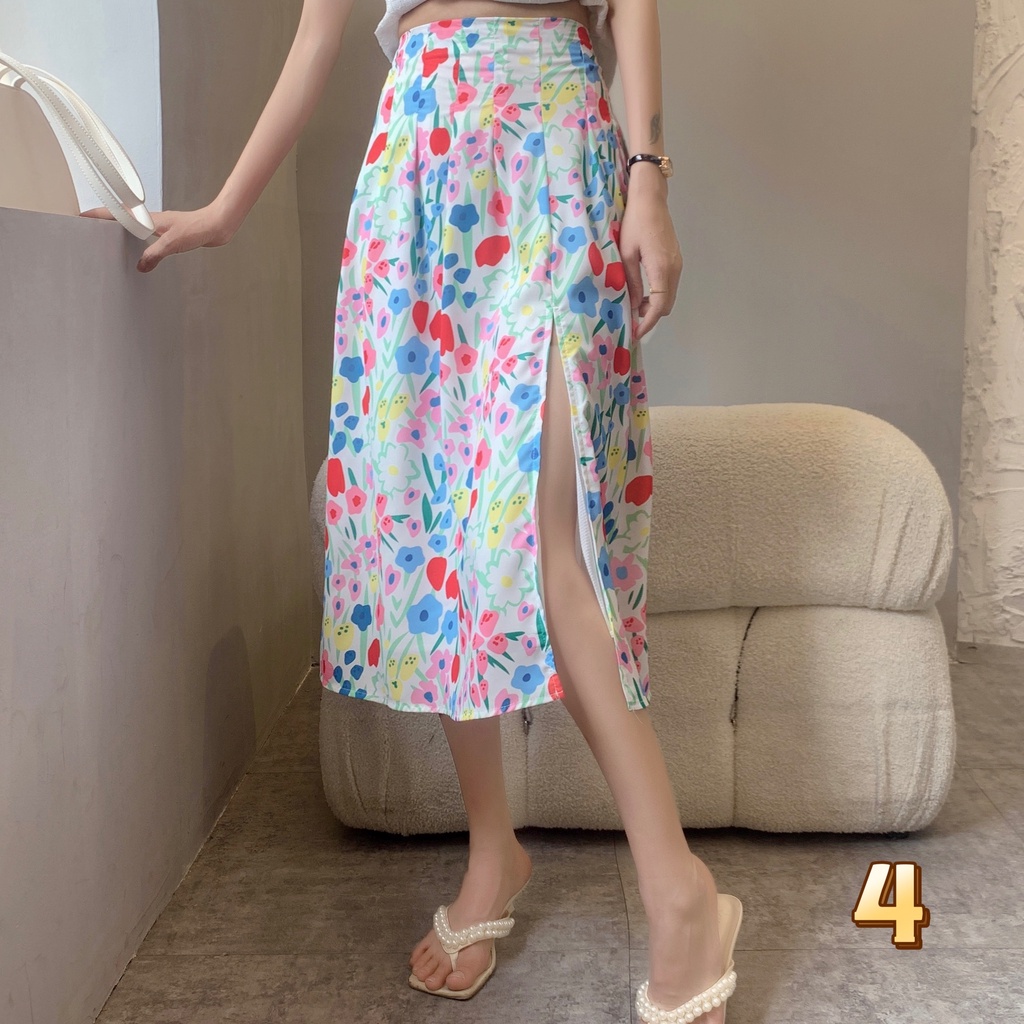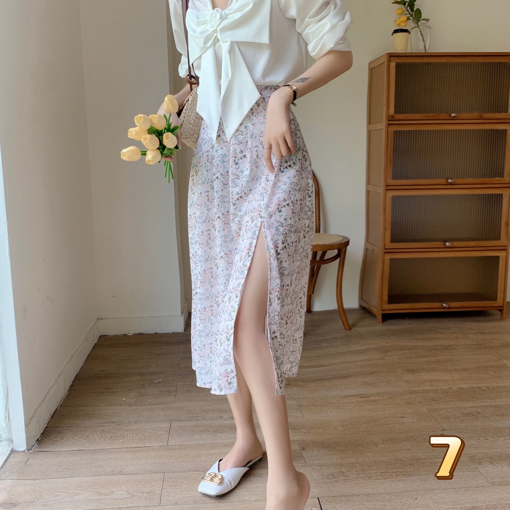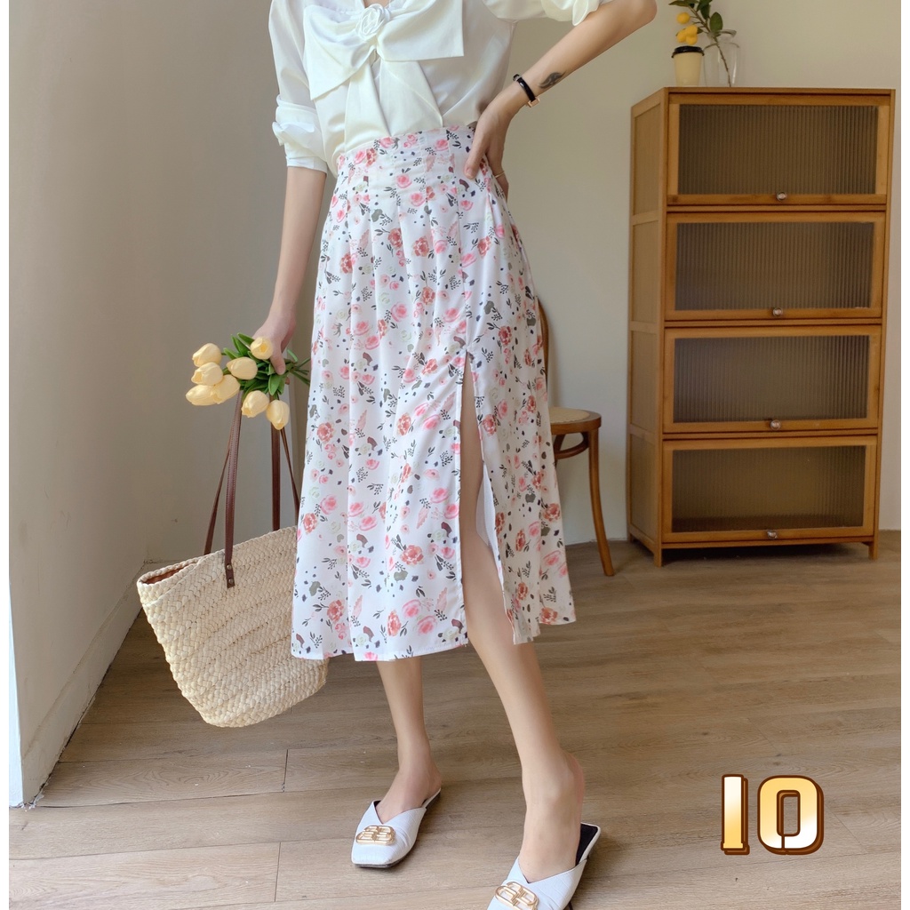 Cicishop(0223)กระโปรงยาว ลายดอกไม้🌷🌹 ผ่าข้าง เอวสม็อค มีซับใน ใส่แล้วดูผอมเพรียว กำลังมาแรง สไตล์เรโทร