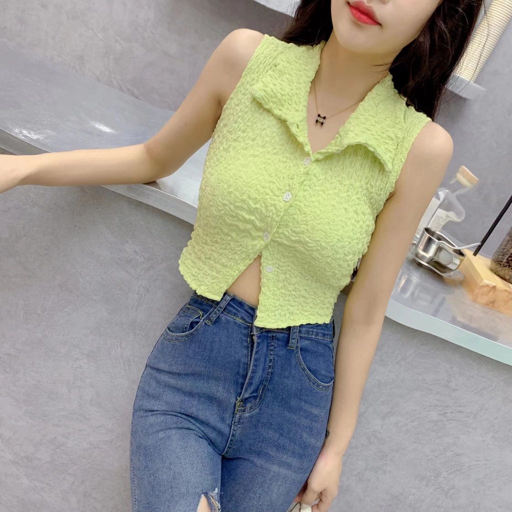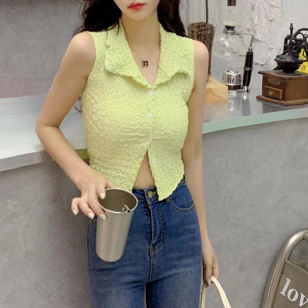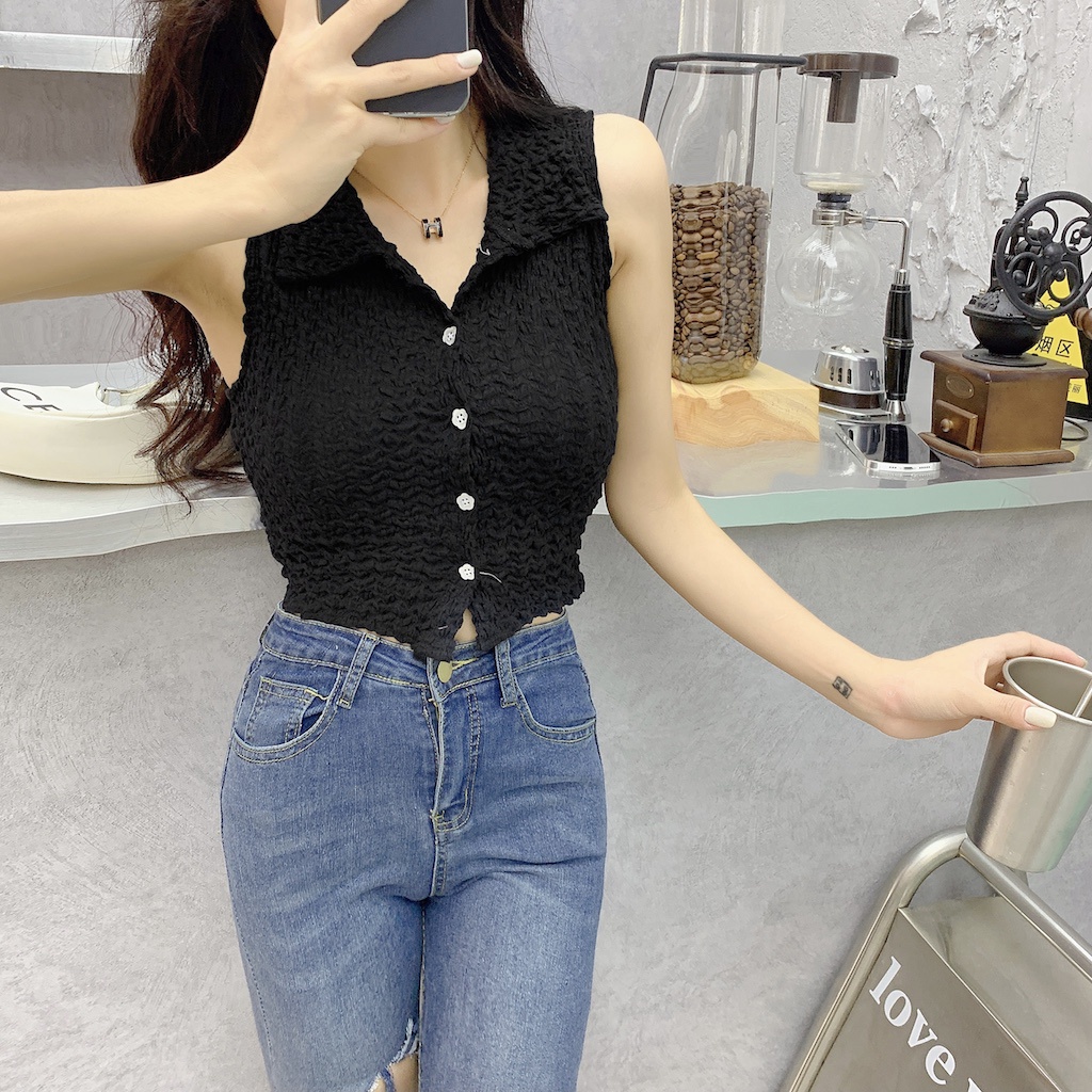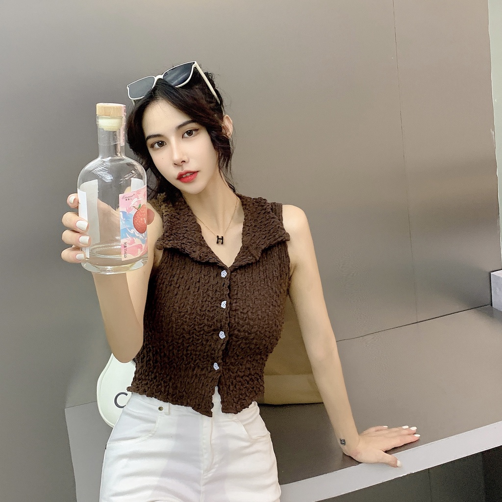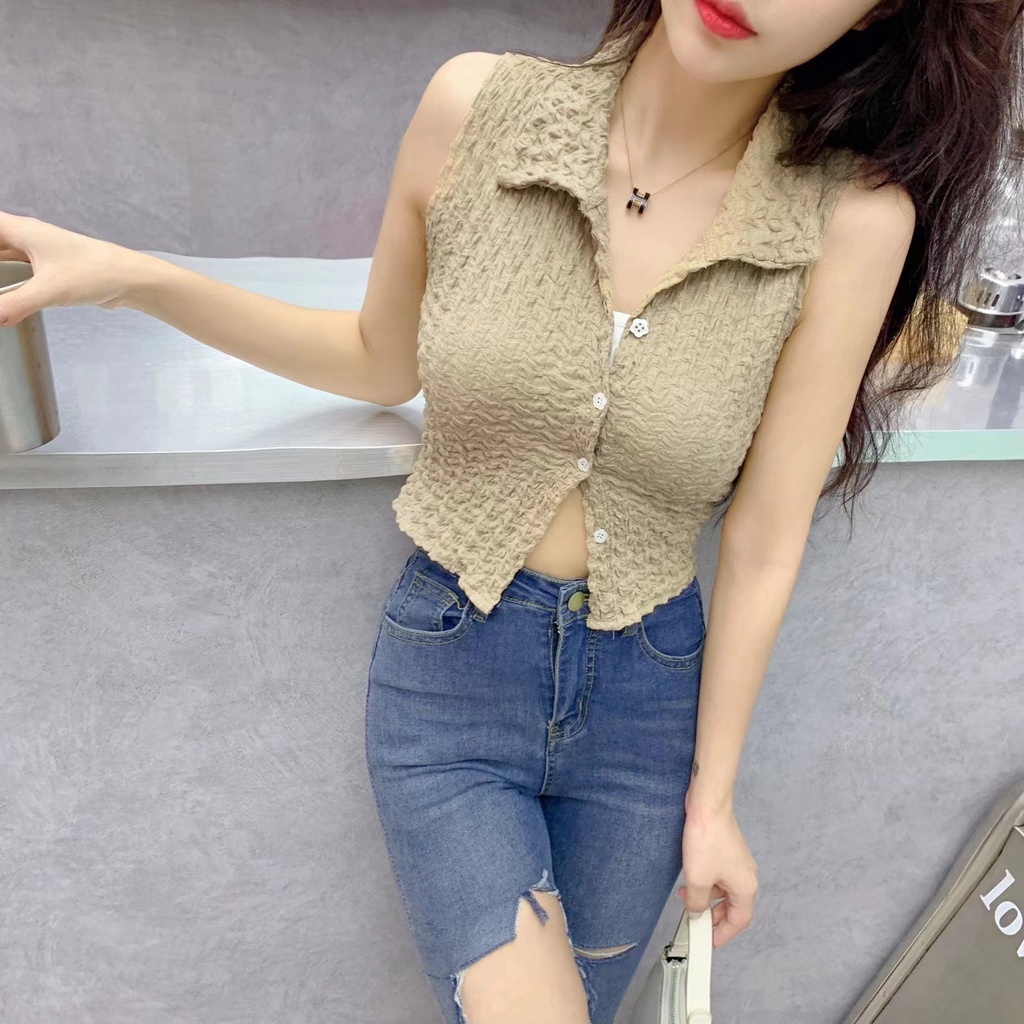 Cicishop(112)เสิ้อแขนกุด คอปก กระดุมผ่ากลางน่ารักมากดูแพง ทรงน่ารักเข้ากับเนื้อผ้า