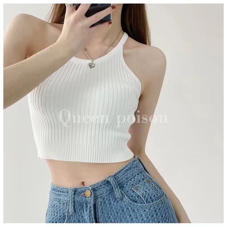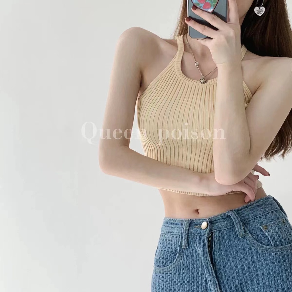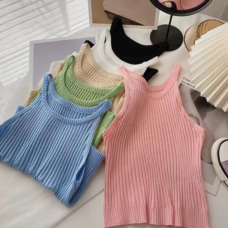 Cicishop(66018/86018)เสื้อกล้ามครอปสายเดี่ยวไหมพรมผ้าร่อง สีสันใสมากๆกับแมทซ์กับยีนส์คือดีย์สุด