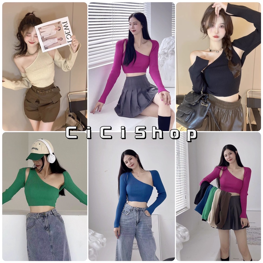 Cicishop(A1178) SET 2 ชิ้นเสื้้อคลุม+สายเดี่ยวข้างเดียว เซทนี้คือสวยปังมากสีชัดแจ่มใส่เต้นหรือจับแมทซ์กางเกงคือดีย์