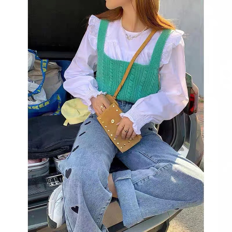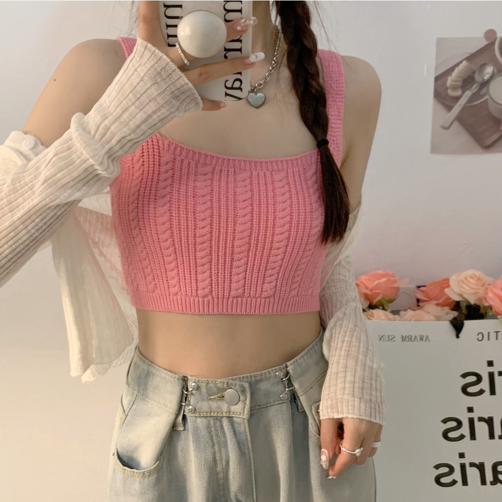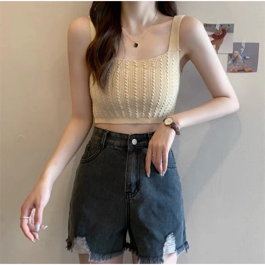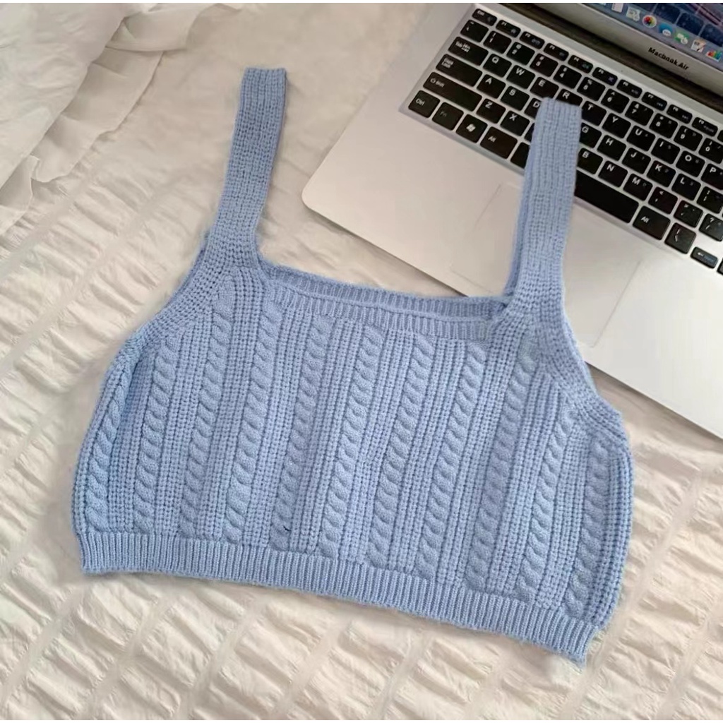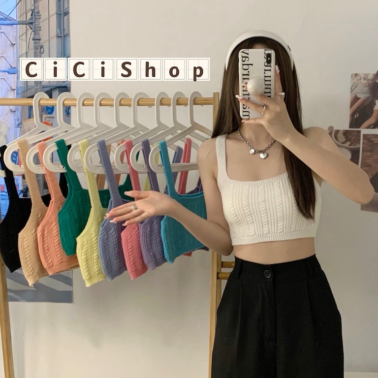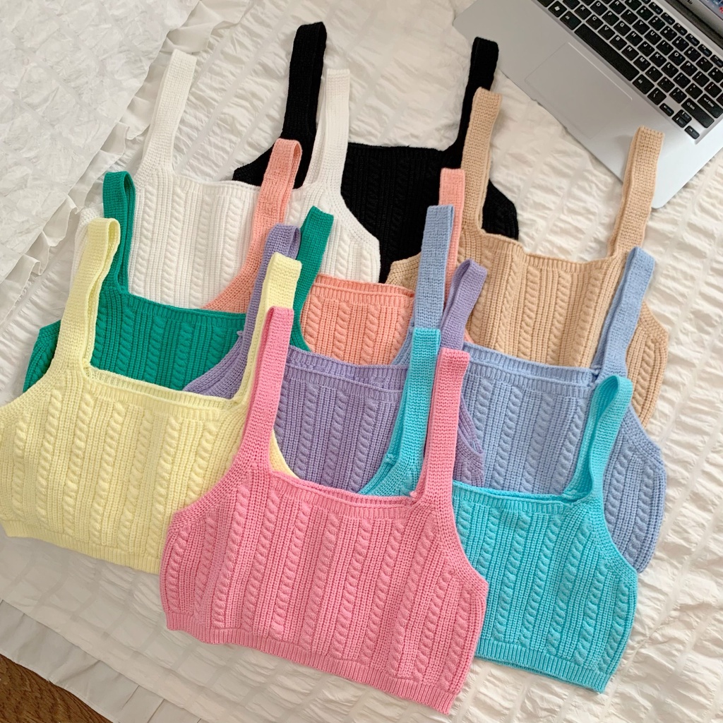 Cicishop(44125) เสื้อครอปTOPไหมพรมสายเดี่ยวทอลาย สีสันสดใสแมทกับกางเกง กระโปรงได้สุด น่ารักเป็นsocuteมากๆ