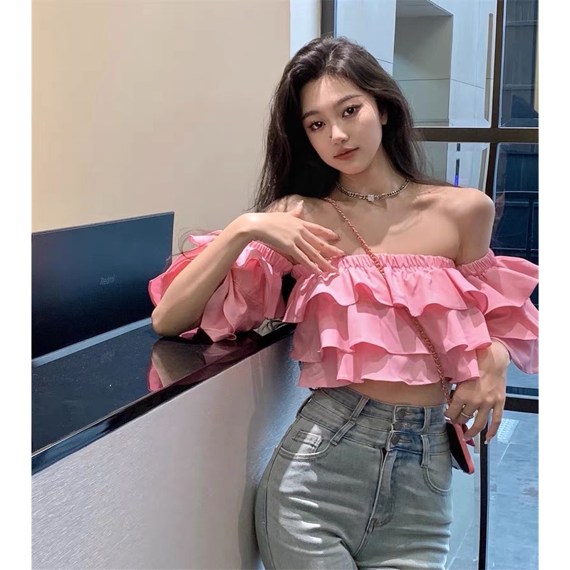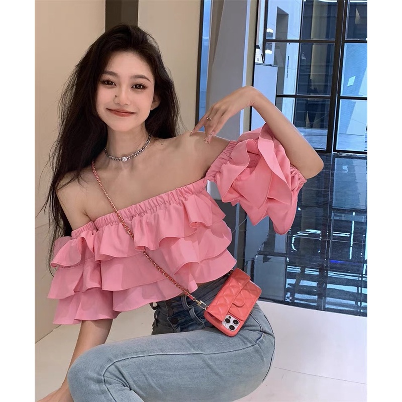 Cicishop(SALE D75)เสื้อครอปสม็อคทั้งตัว แต่งแขนระบาย ยืดได้เยอะใส่แล้วน่ารักมากๆ แขนเป็นทรงตุ๊กตานะ สาวๆไม่ควรพลาด