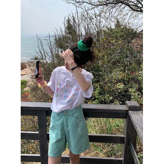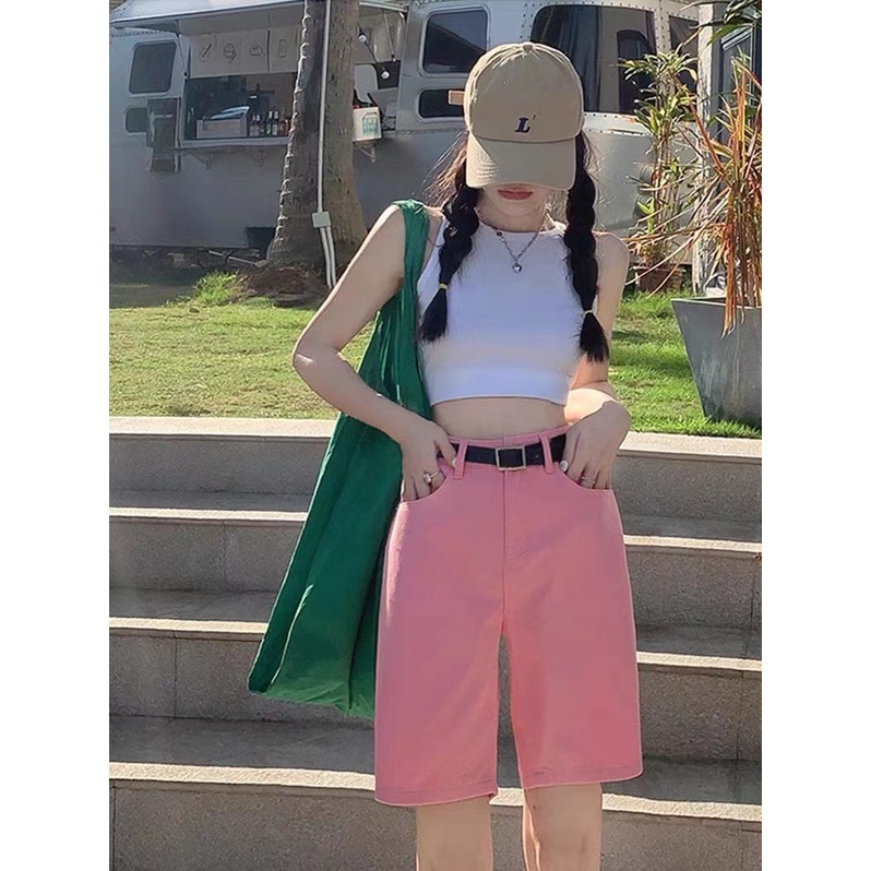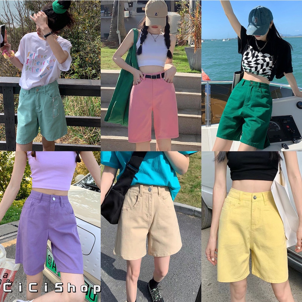 Cicishop(SALE/สุ่มสี 669)กางเกงยีนส์ขาสามส่วน เอวสูง ทรงสวย สีสันใสแบบจ๊าบๆ เท่ๆ แมทซ์ได้ทุกลุค