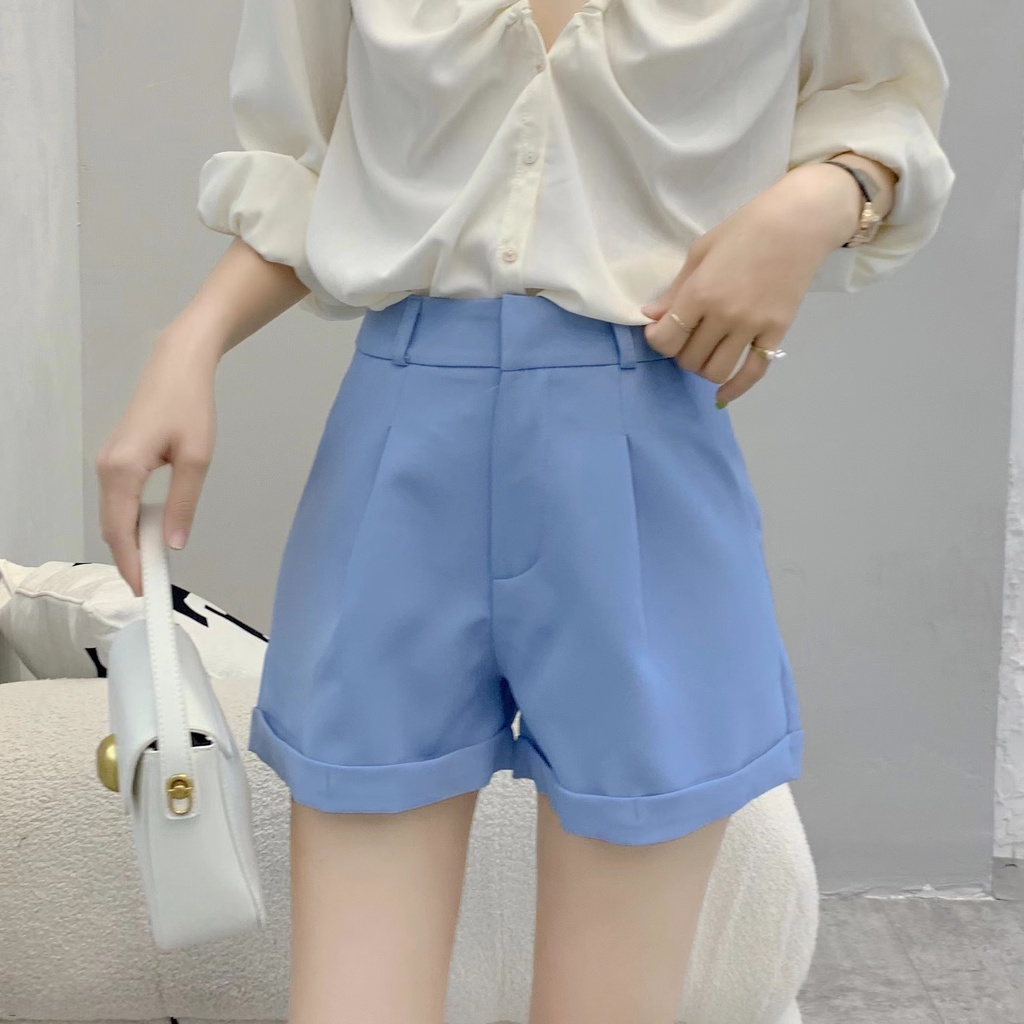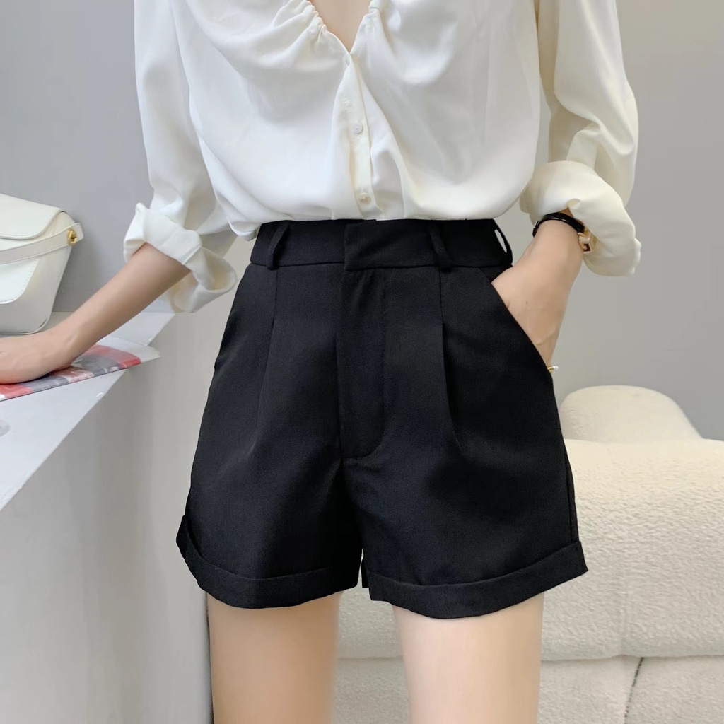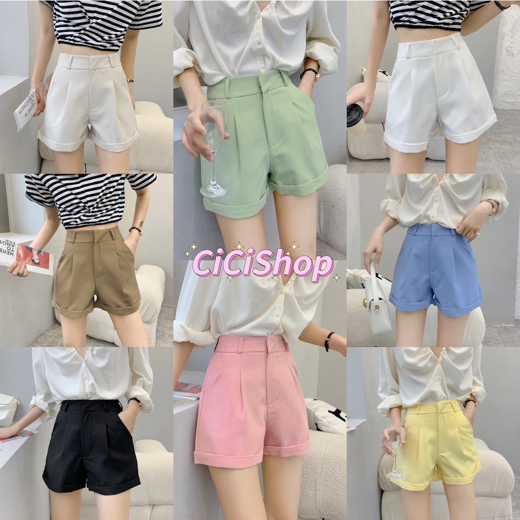 Cicishop(271)กางเกงขาสั้น BASIC SHORTSทรงบอย พับขางานตะขอ เอวสูง ใส่แล้วดูเพรียวพรางสะโพกต้นขา