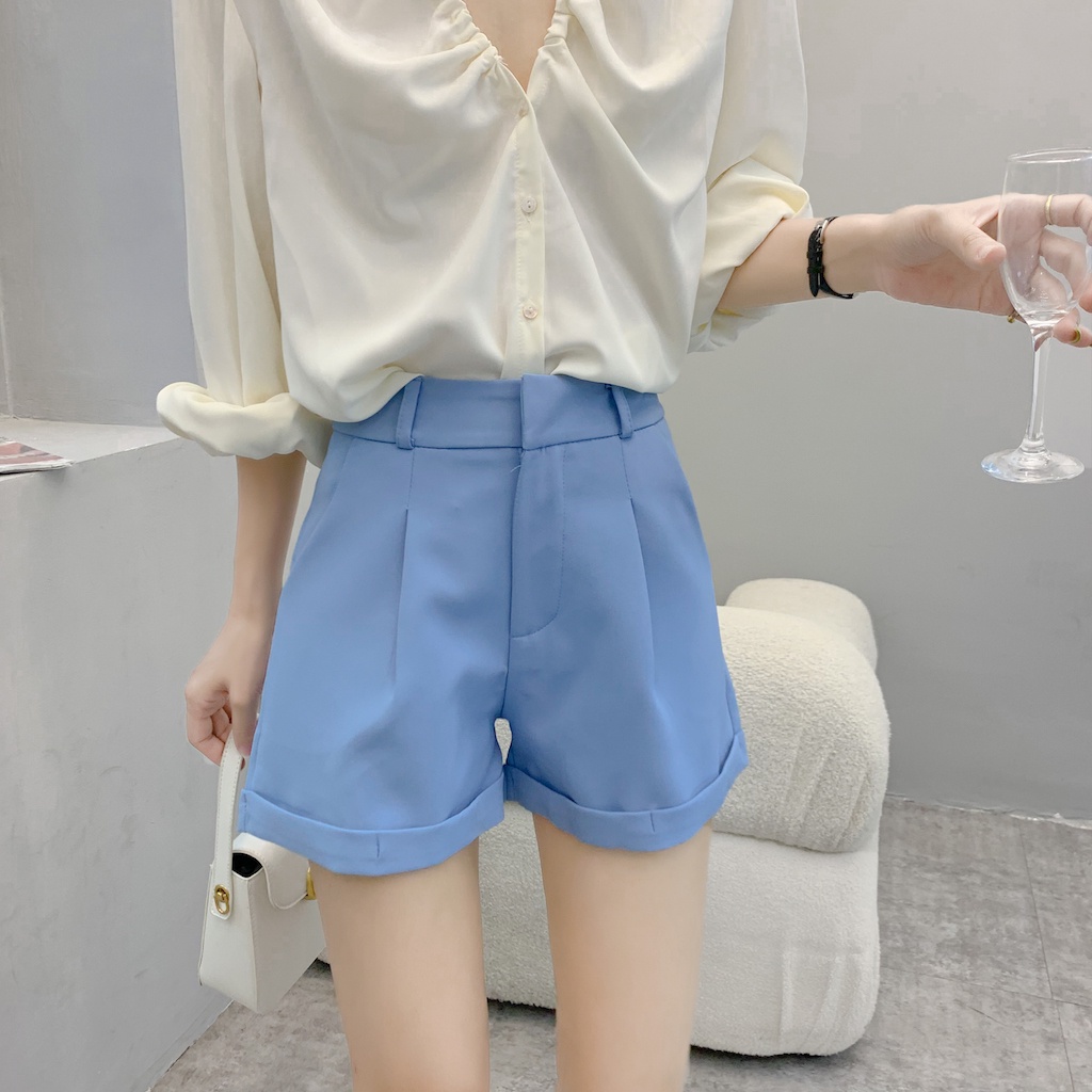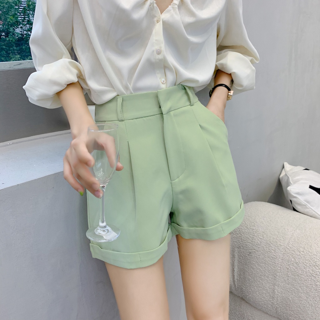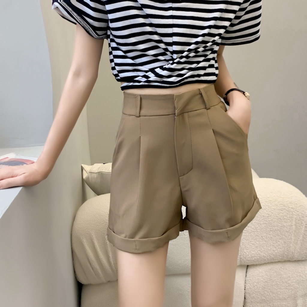 Cicishop(271)กางเกงขาสั้น BASIC SHORTSทรงบอย พับขางานตะขอ เอวสูง ใส่แล้วดูเพรียวพรางสะโพกต้นขา