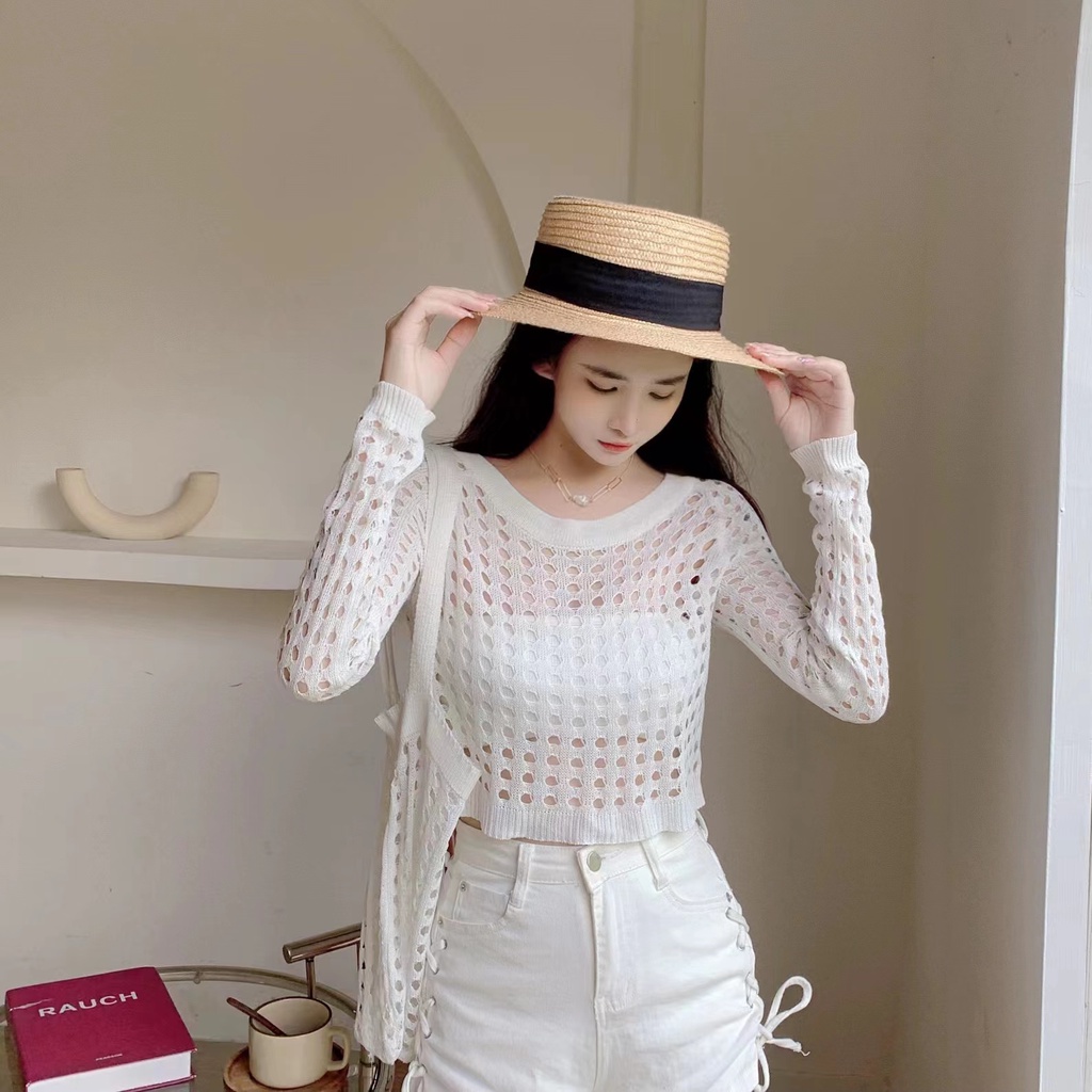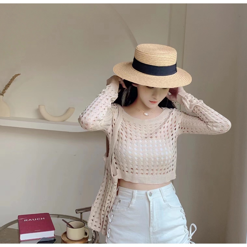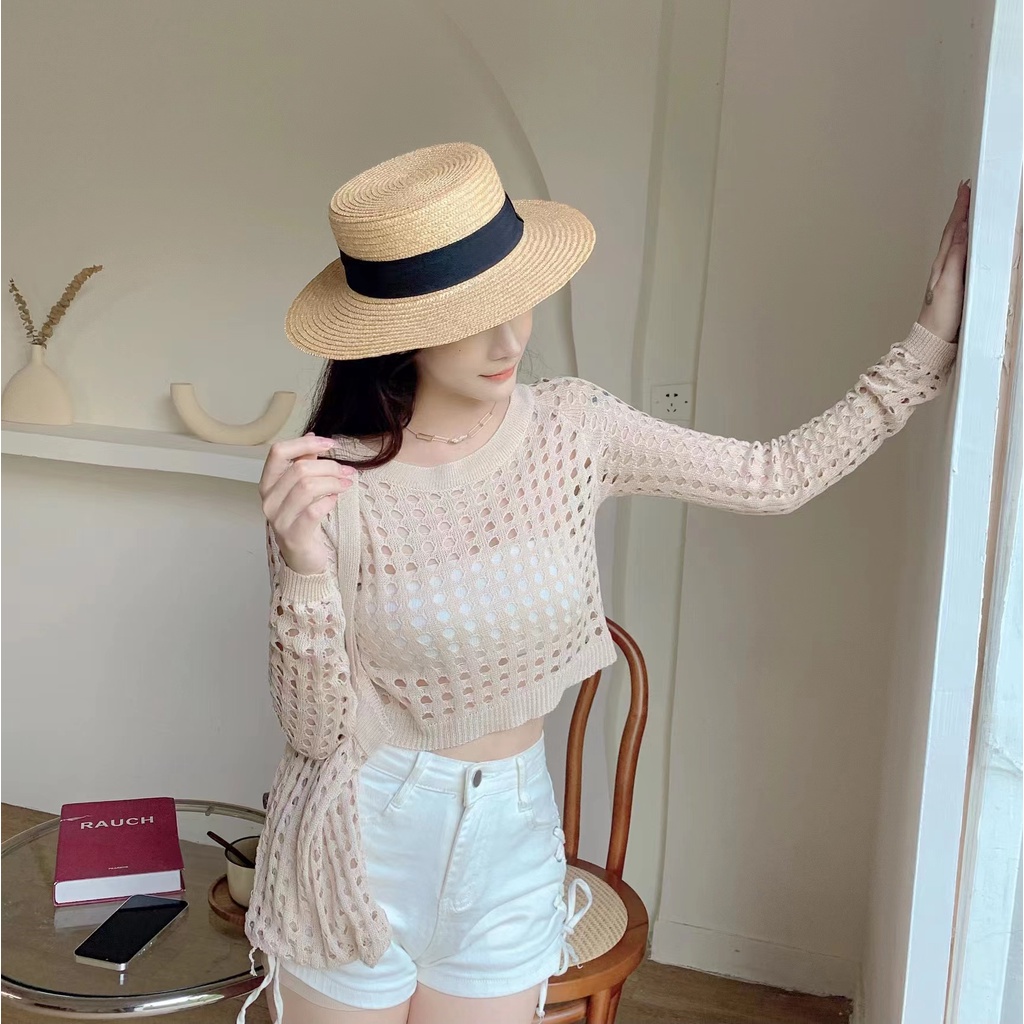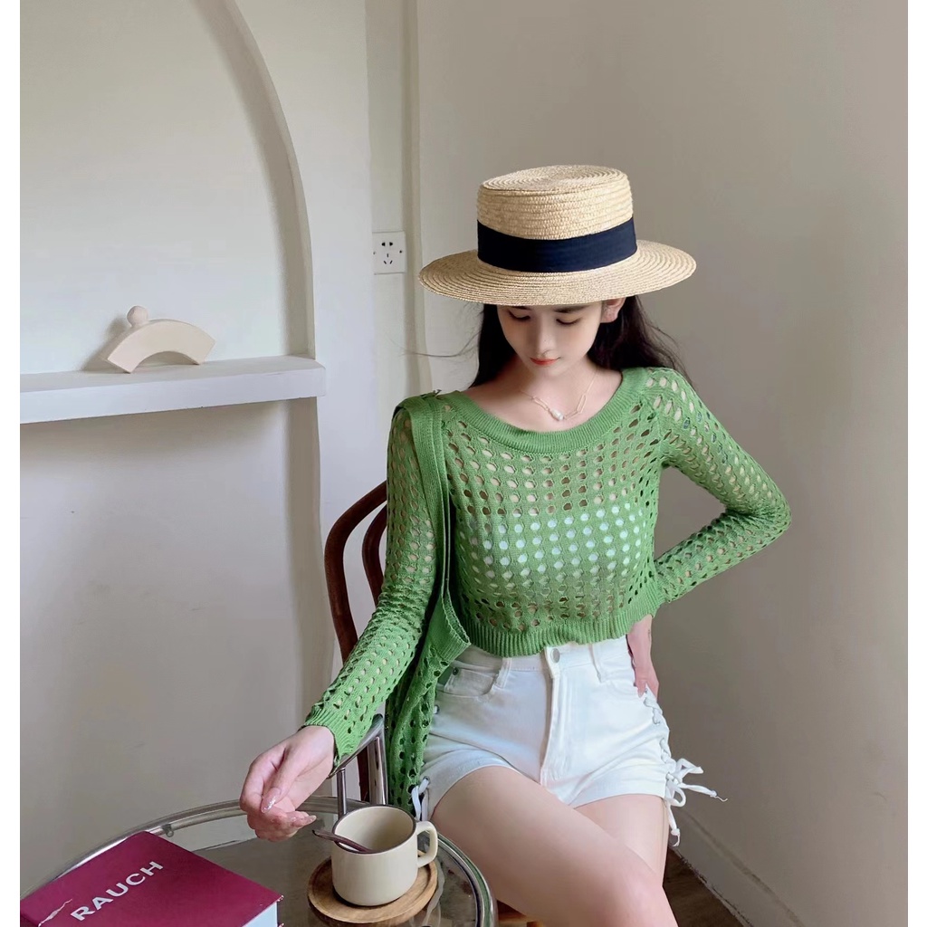 Cicishop (SALE TT2165)KnitTop+Bag Set เสื้อไหมพรมถักโครเชต์กิมมิคตาข่าย จับคู่แมตช์กระเป๋าข้าง สไตล์สายเกา
