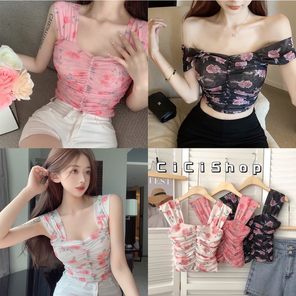 Cicishop(590)สายเดี่ยวชีฟองนุ่มๆไม่คัน ทรงเกาะอก ลายดอกไม้ ดีเทลย่นกลางอก ยืดได้เยอะ น่ารักกหวานๆสไตล์โคเรีย