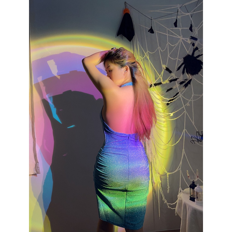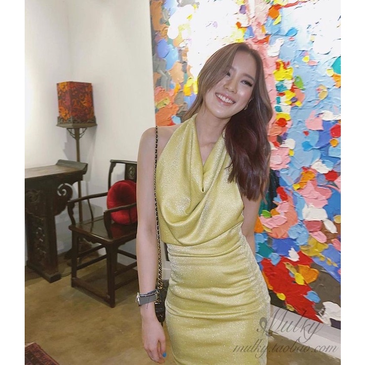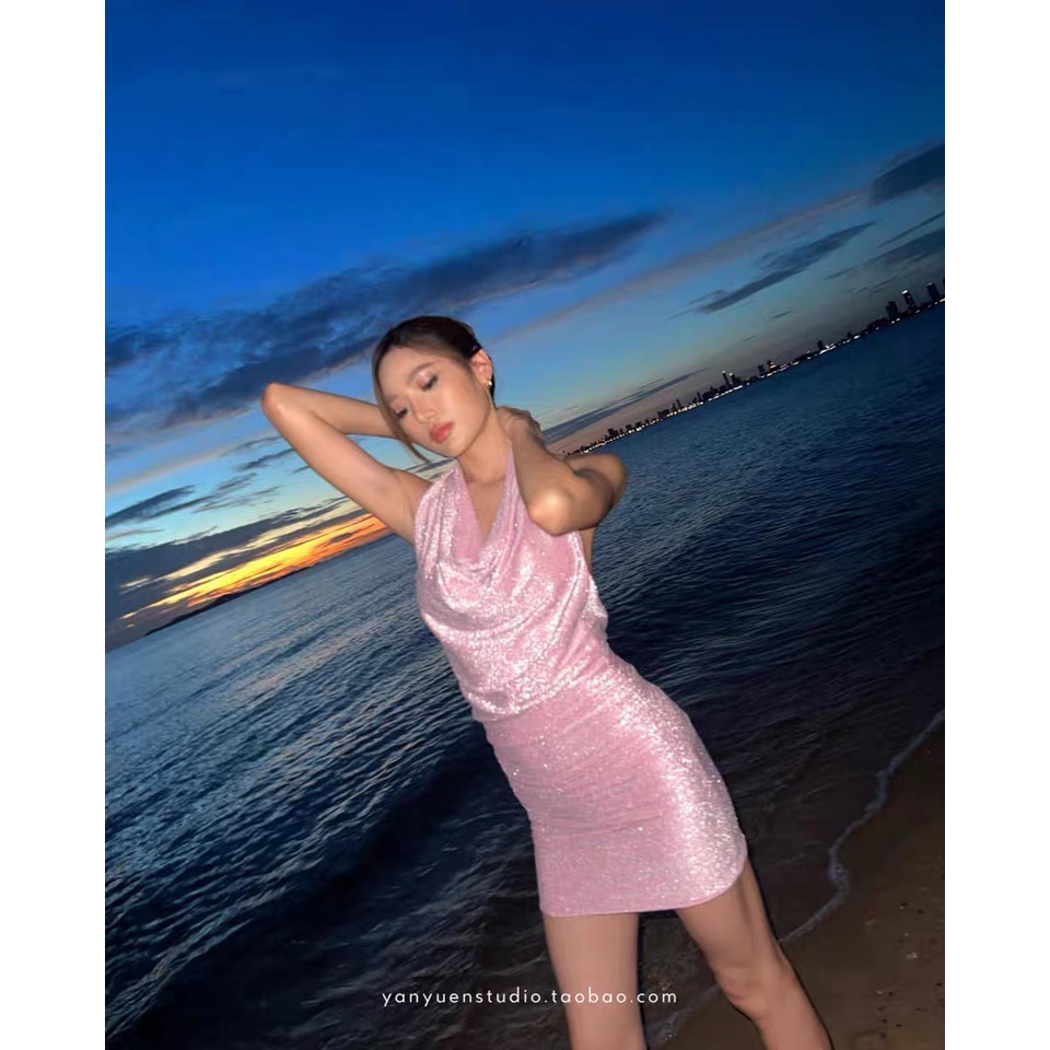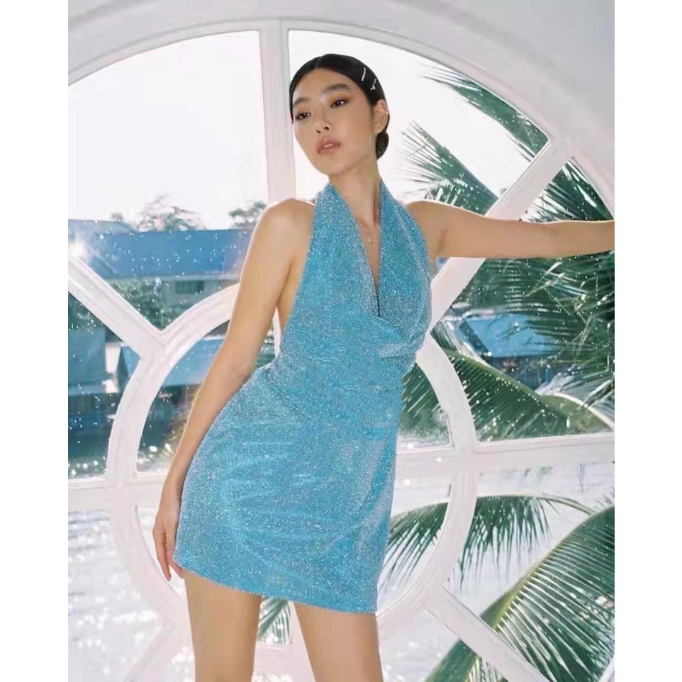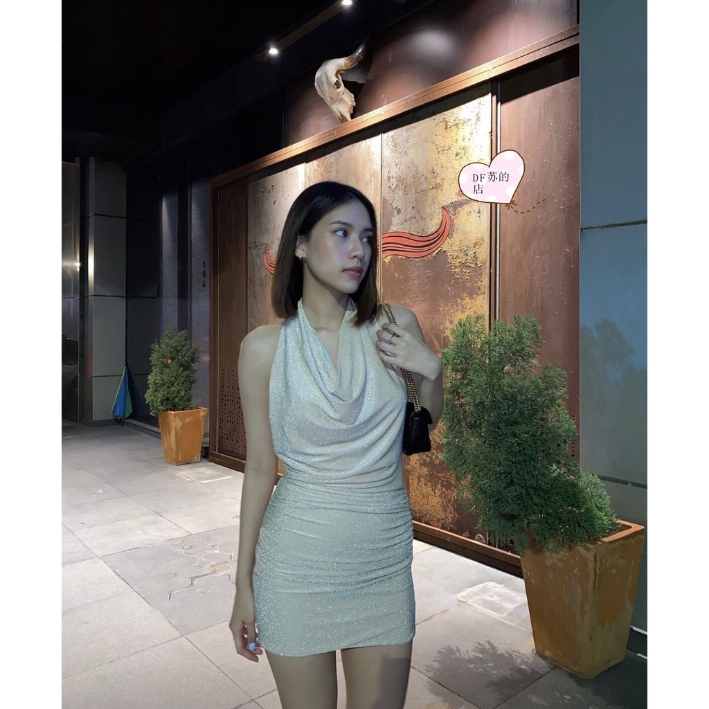 Cicishop(SALE/สุ่มสี 3048)ชุดเดรสคล้องคอ เว้าหลัง ผ้ามีความวิ้งวับ สวยแซ่บมากก ใส่ไปปาร์ตี้หรือออกงานคือจึ้งสุดด