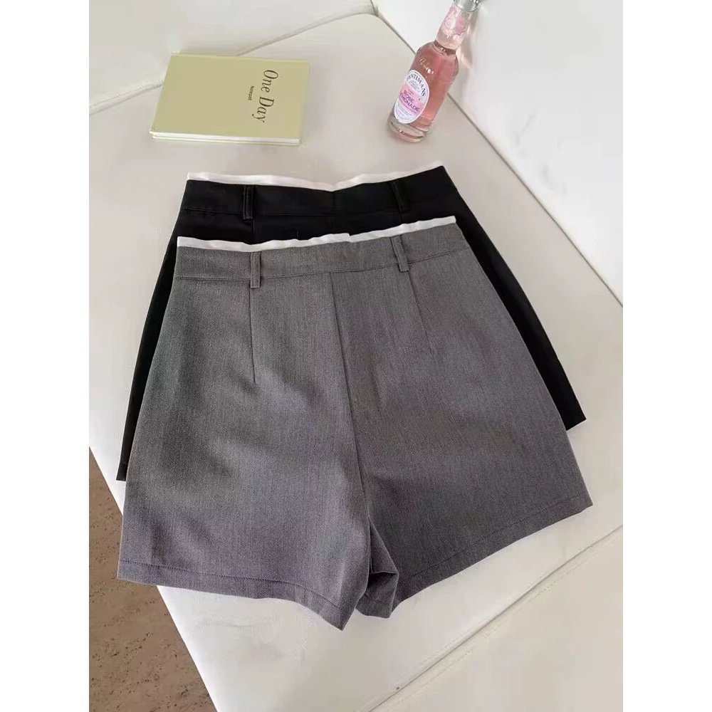 Cicishop(New3018)กรโปรงกางเกงสั้นทรงเอ ดีเทลแต่งขอบกระเป๋าสามารถใช้งานได้จริง สไตล์ฝรั่งเศษ