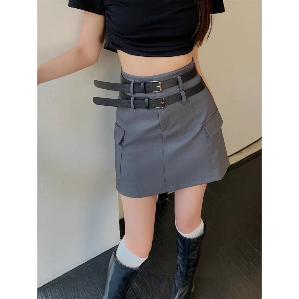 Cicishop(SALE 101)กระโปรงสั้นทรงคาร์โก้ ดีเทลกระเป๋าข้าง ผ้าดีใส่สบาย จับแมทซ์ได้ง่ายเหมาะกับสาวทุกสไตล์ พร้อมเข็มขัด
