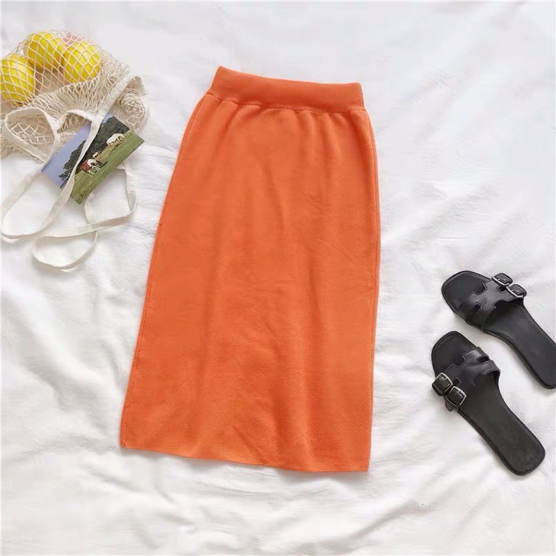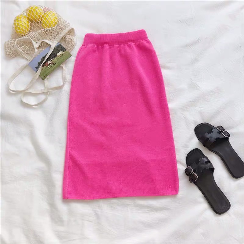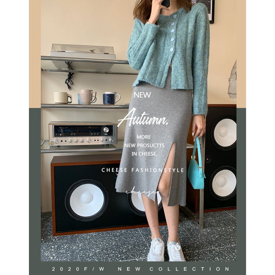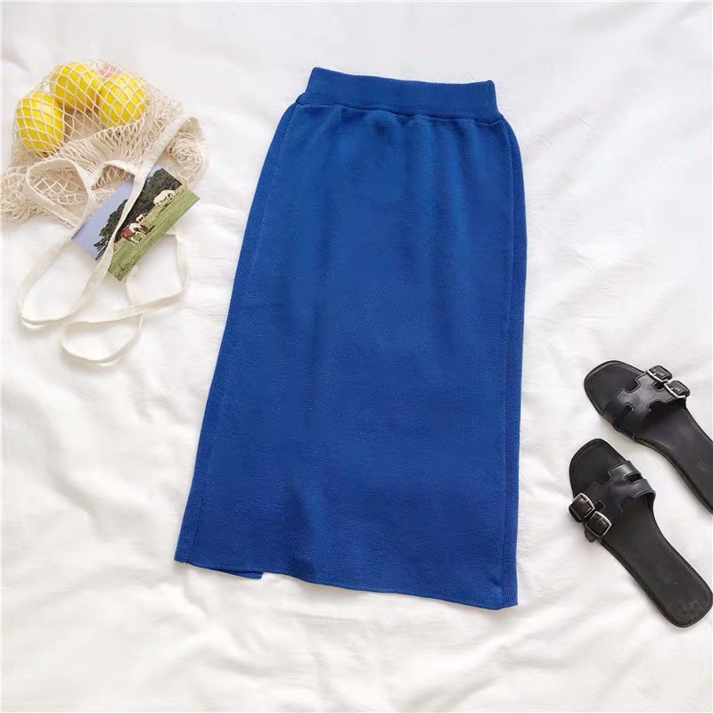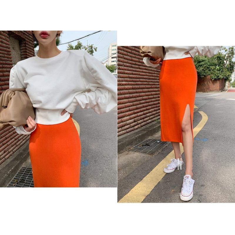 Cicishop (พร้อมส่ง)กระโปรงไหมพรม แหวกข้าง ผ้านิ่มยืดได้(3215)