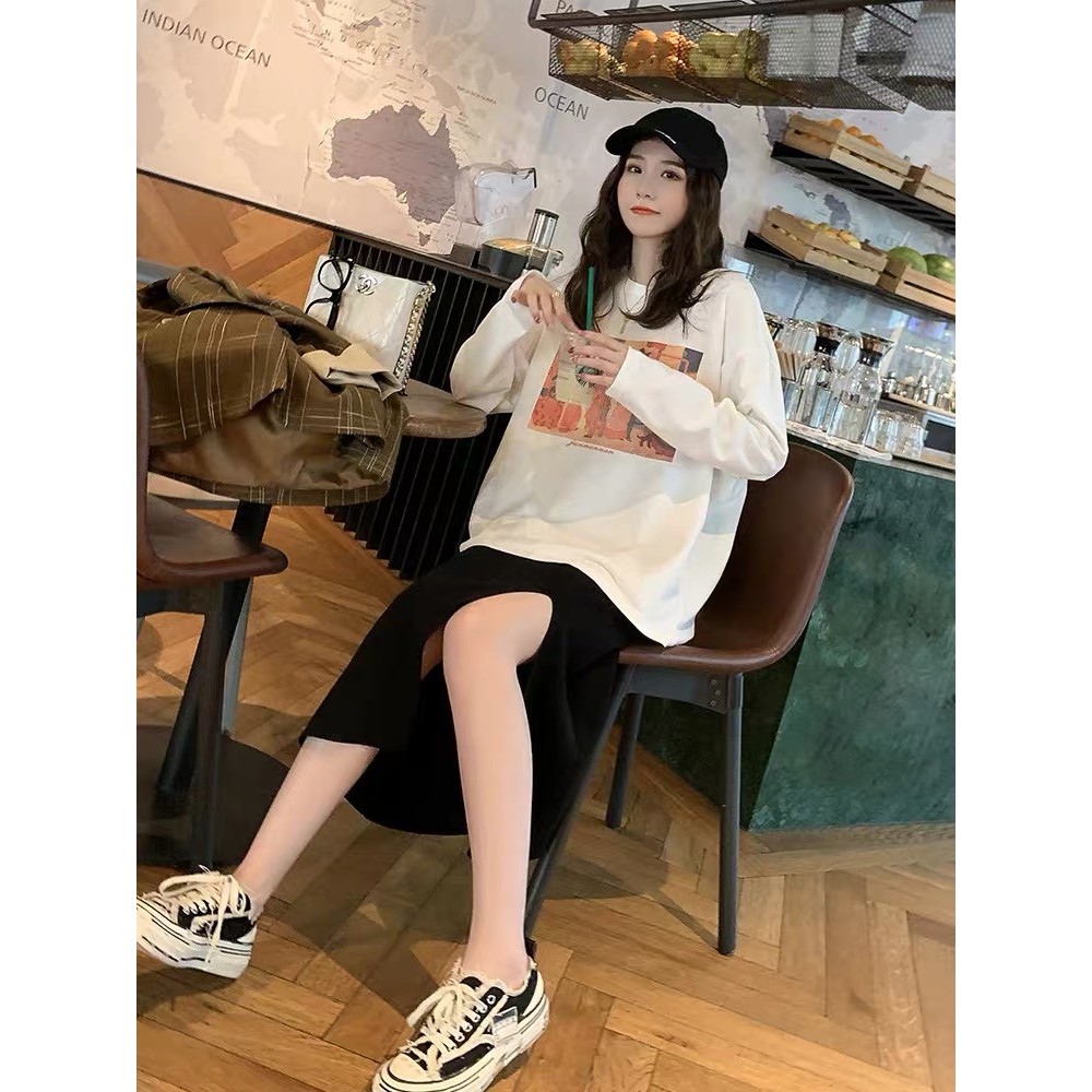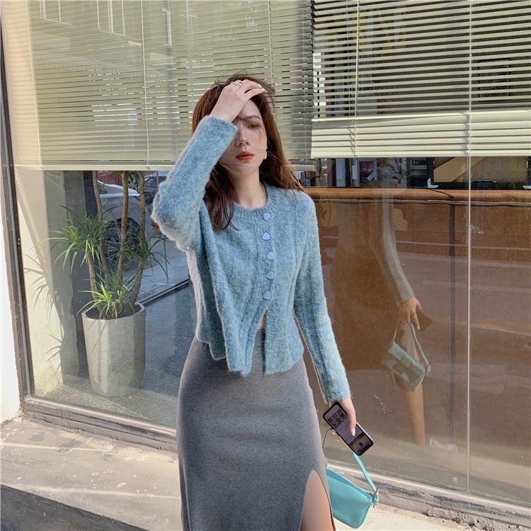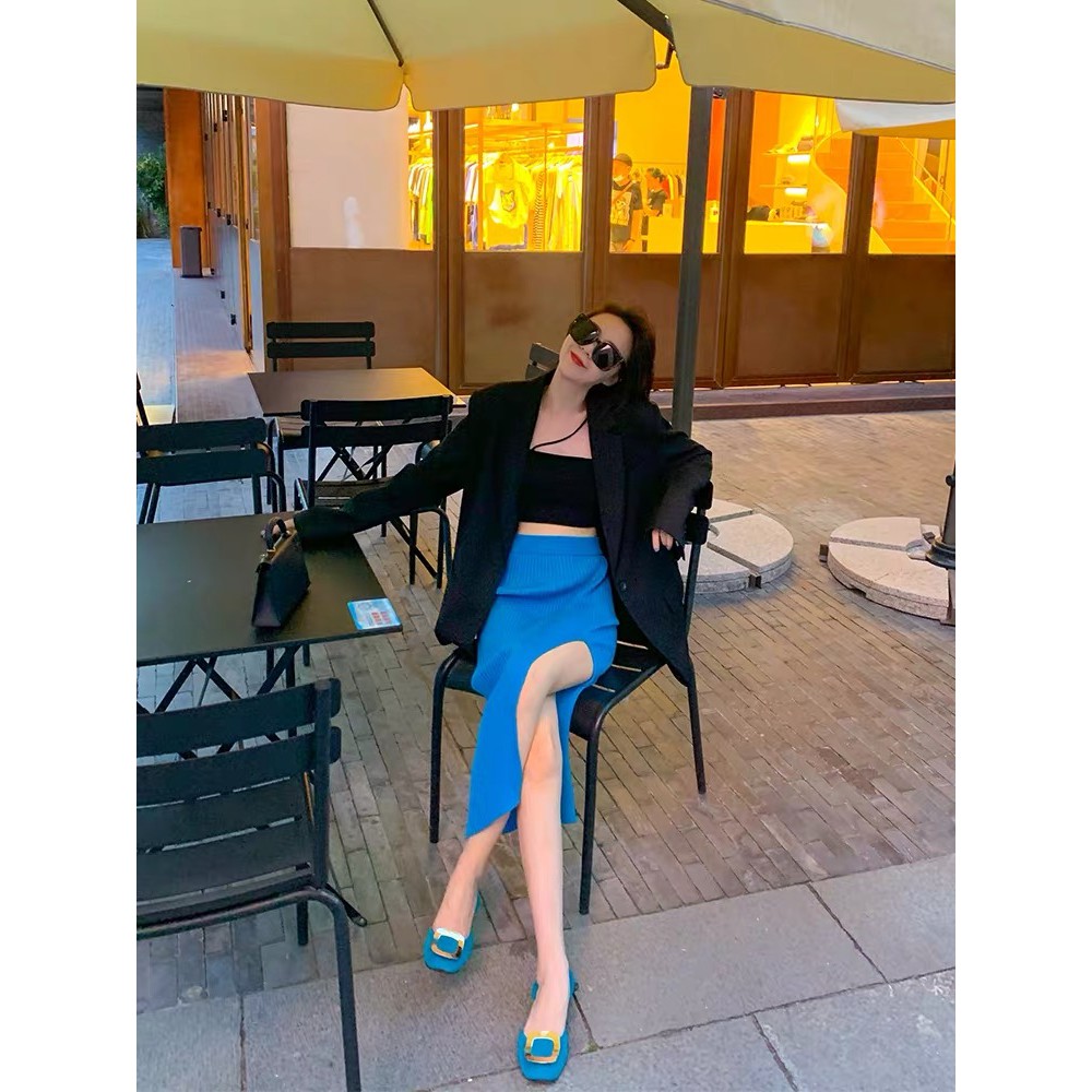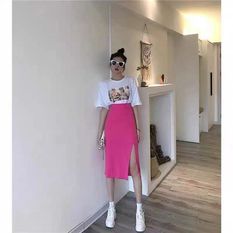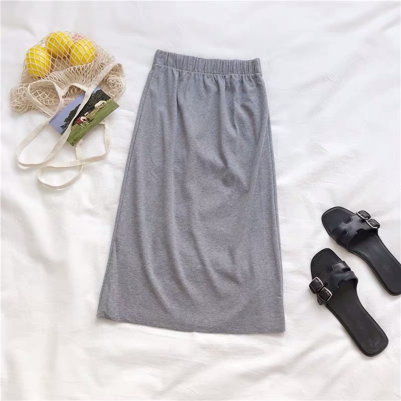 Cicishop (พร้อมส่ง)กระโปรงไหมพรม แหวกข้าง ผ้านิ่มยืดได้(3215)