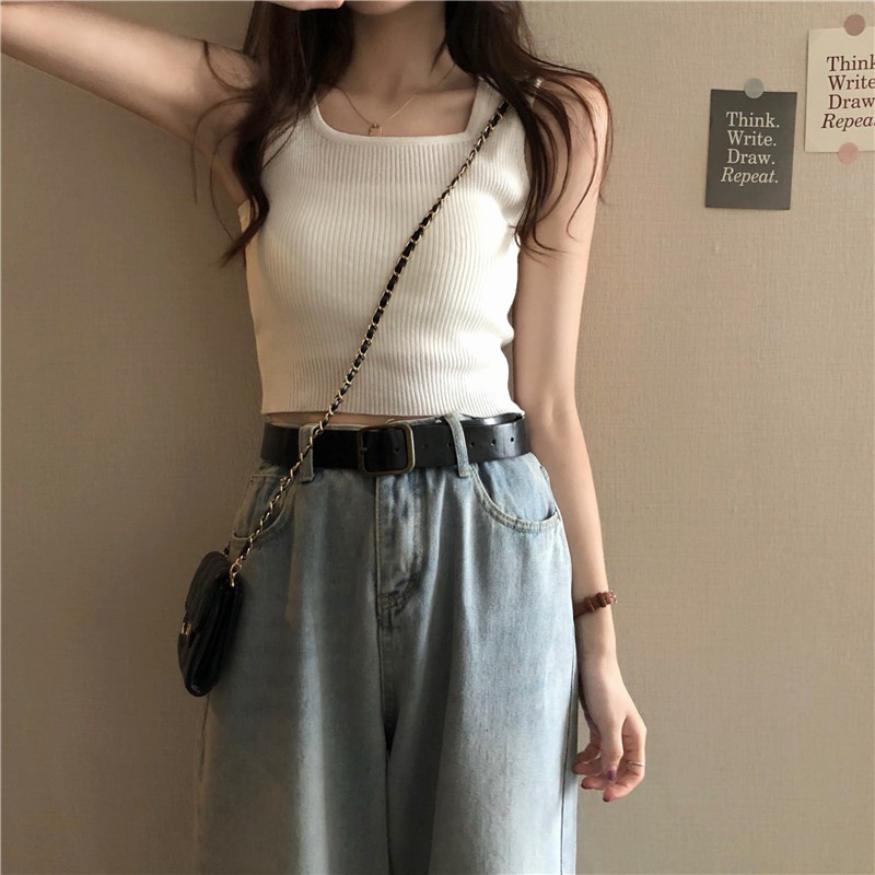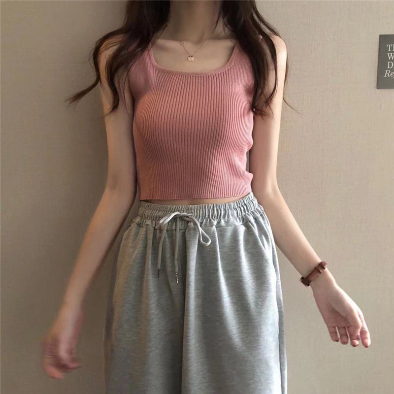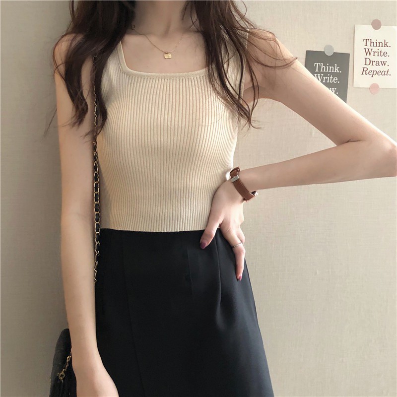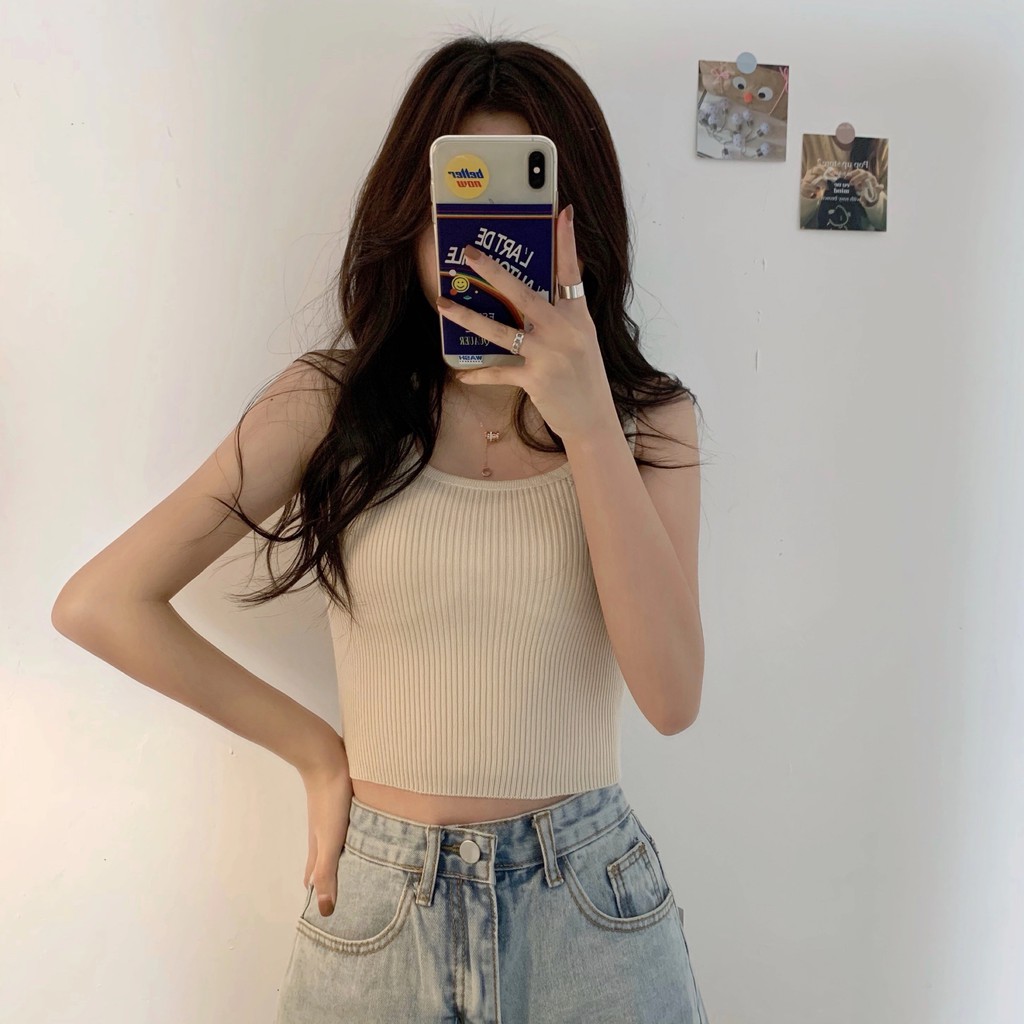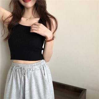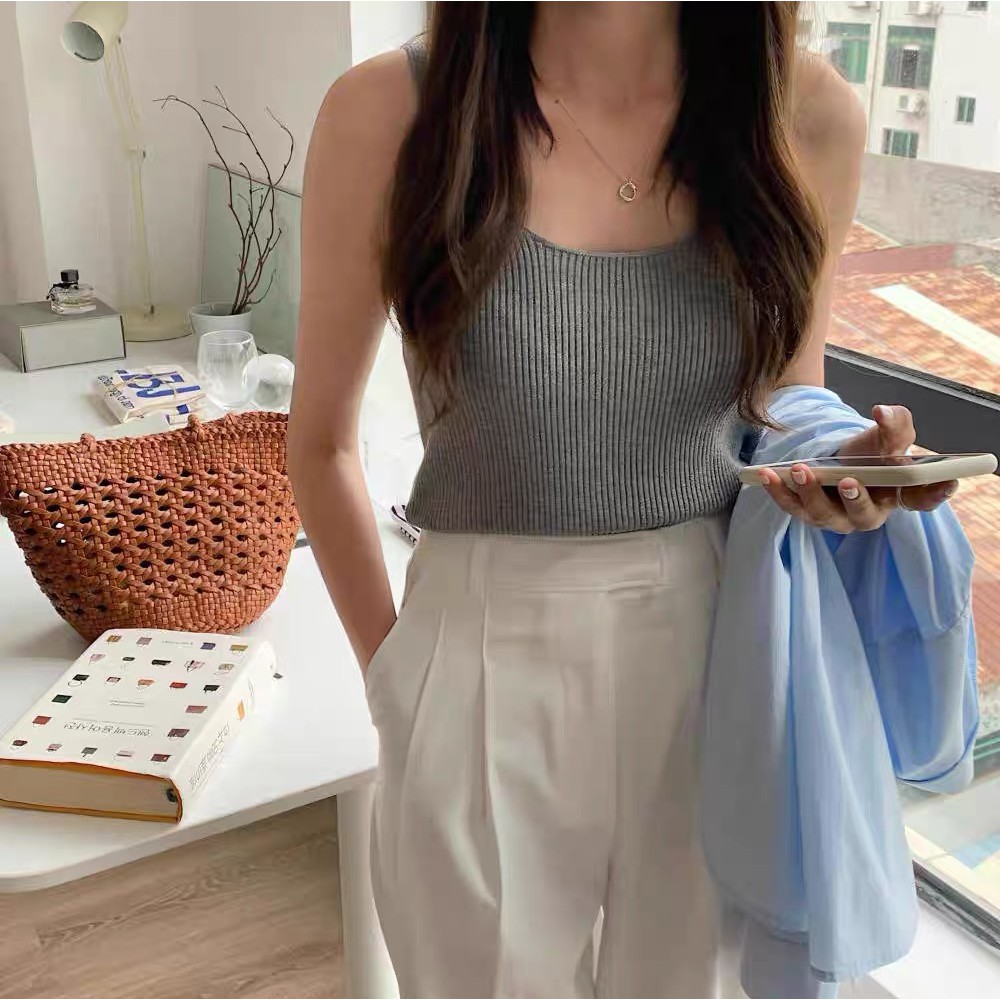 Cicishop(พร้อมส่ง)เสื้อกล้ามแขนกุด ผ้าไหมพรม สไตล์สาวโคเรีย(28019)