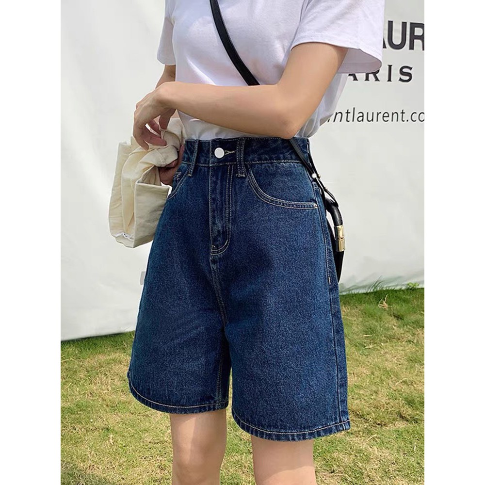 Cicishop(0567)กา งเกงยีนส์ทรงกระบอกสามส่วน เอวสูง เก็บทรงสวย สไตล์วินเทจ