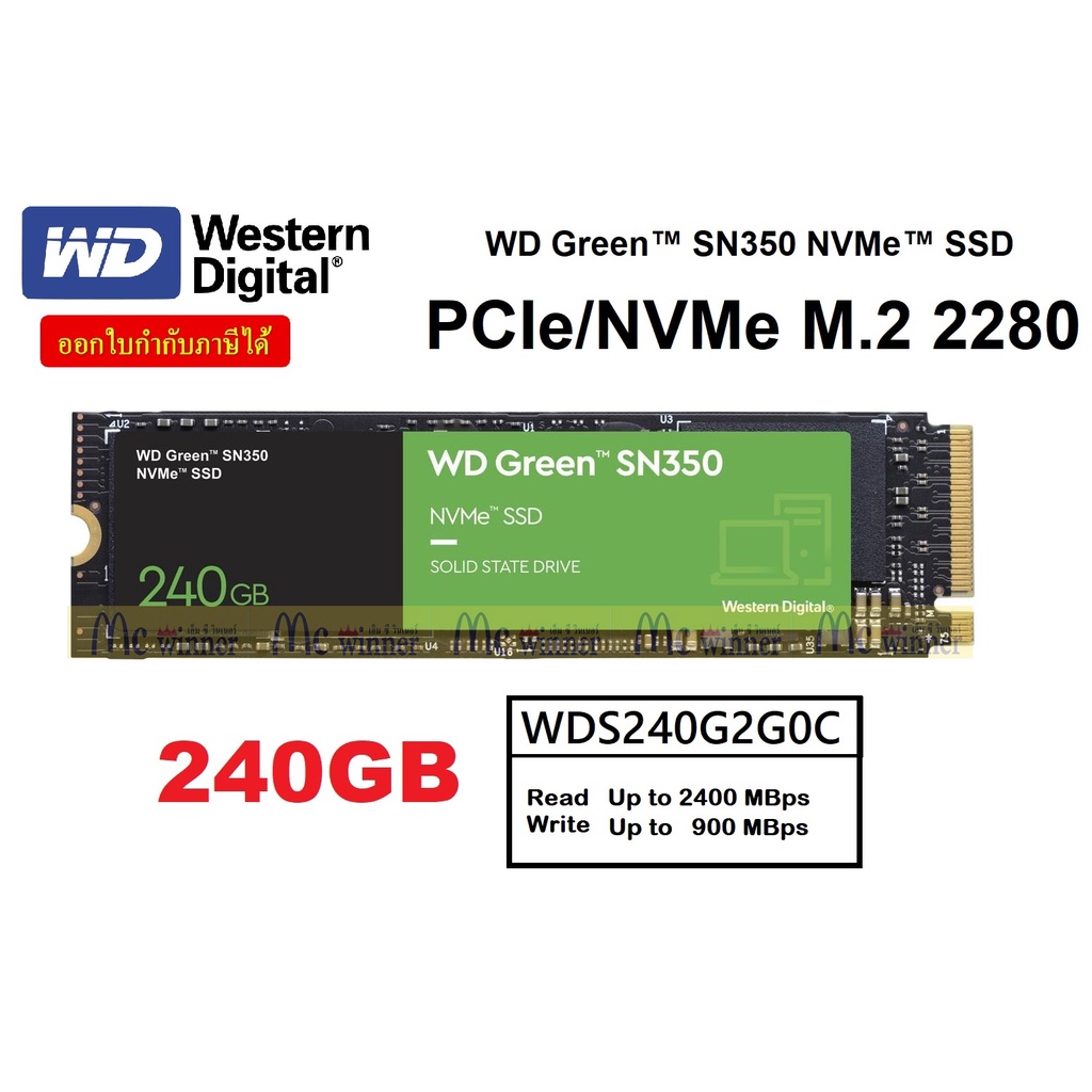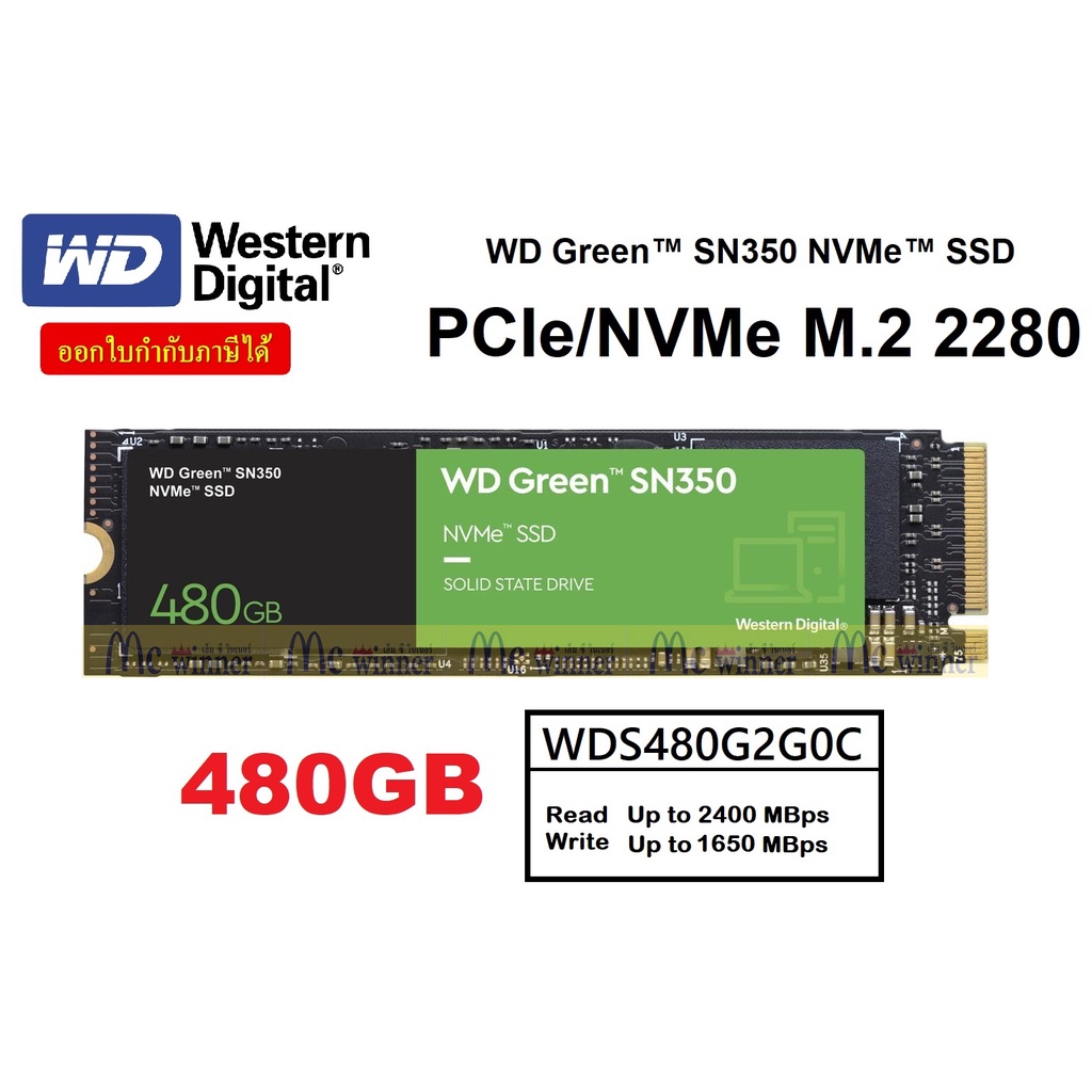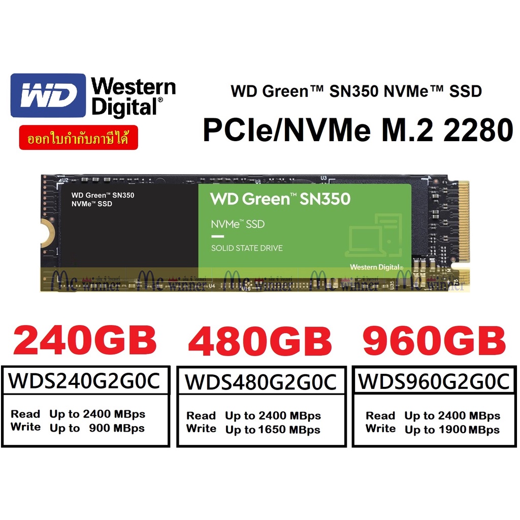 240GB | 480GB | 960GB SSD (เอสเอสดี) WD GREEN SN350 PCIe/NVMe M.2 2280- ของแท้รับประกัน 3 ปี