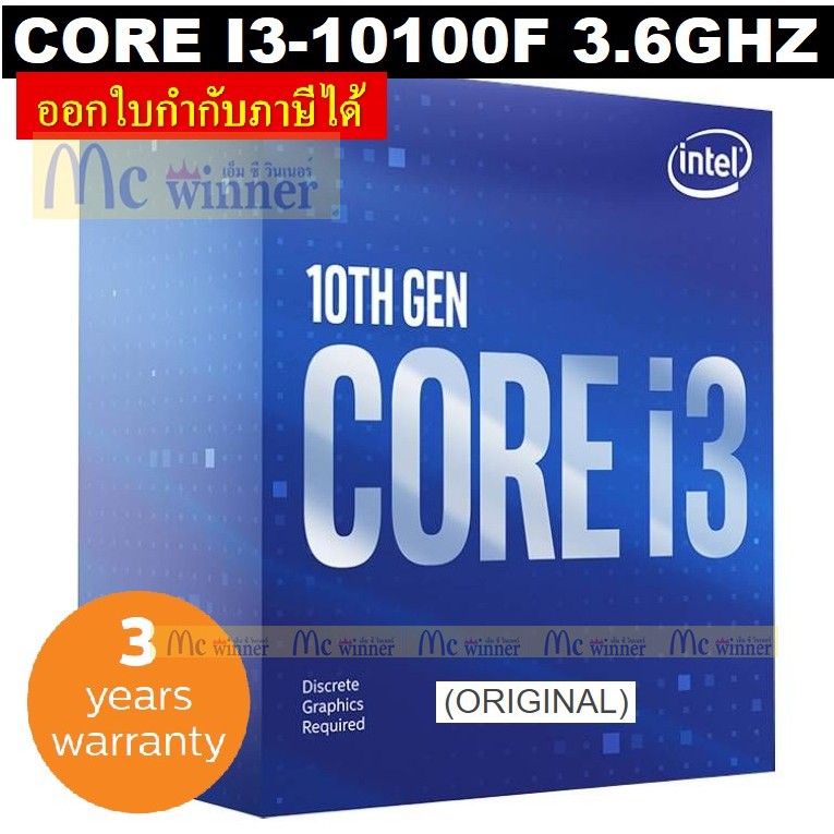CPU (ซีพียู) INTEL 1200 CORE I3-10100F 3.6 GHz (ORIGINAL) - รับประกัน 3 ปี