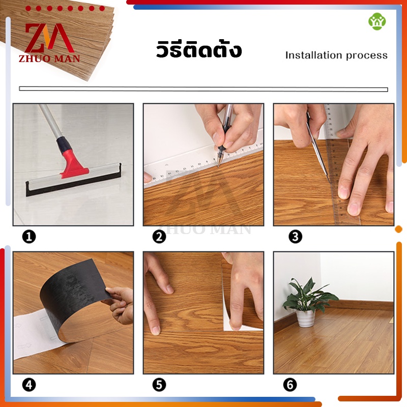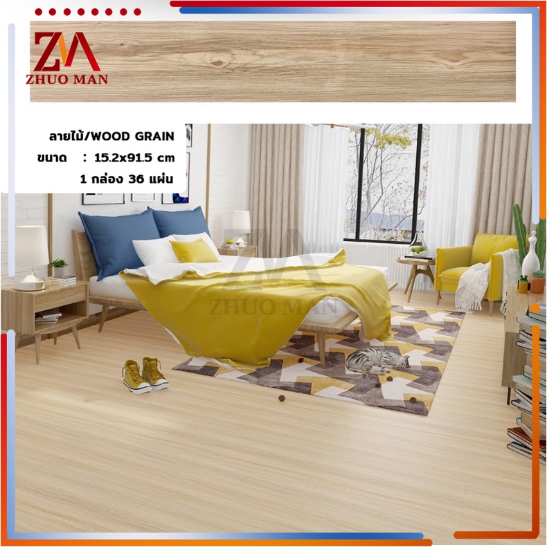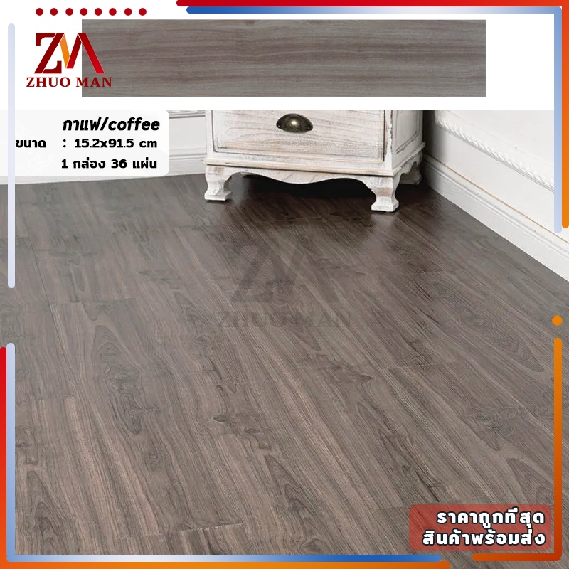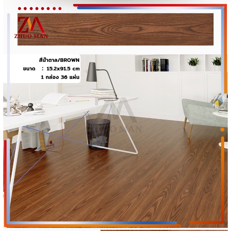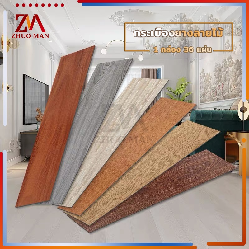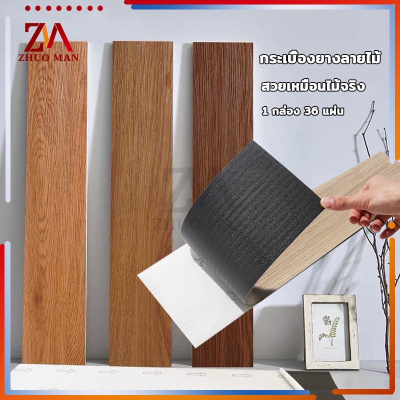 พื้นไม้ กระเบื้องยางลายไม้ แผ่นปูพื้น36 ชิ้น แผ่น PVCปูพื้น กระเบื้องยางปูพื้น แบบมีกาวในตัว 5 ตรม./กล่อง