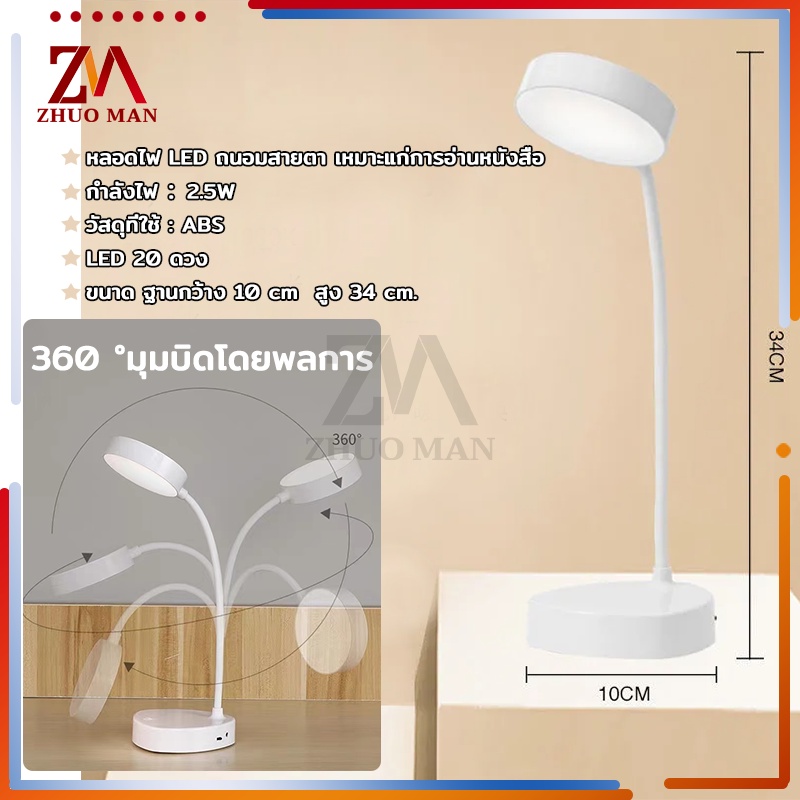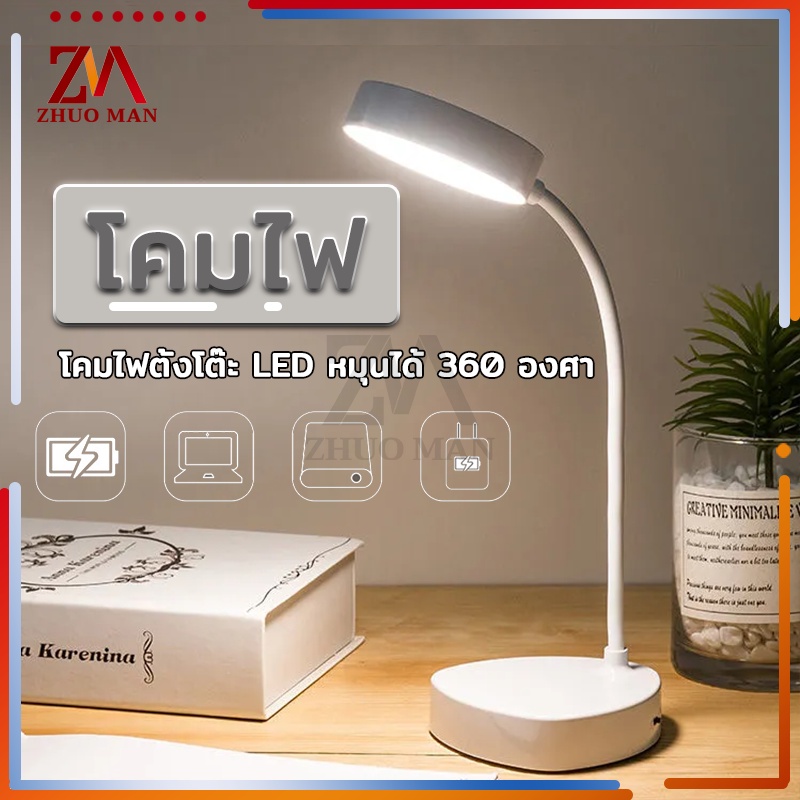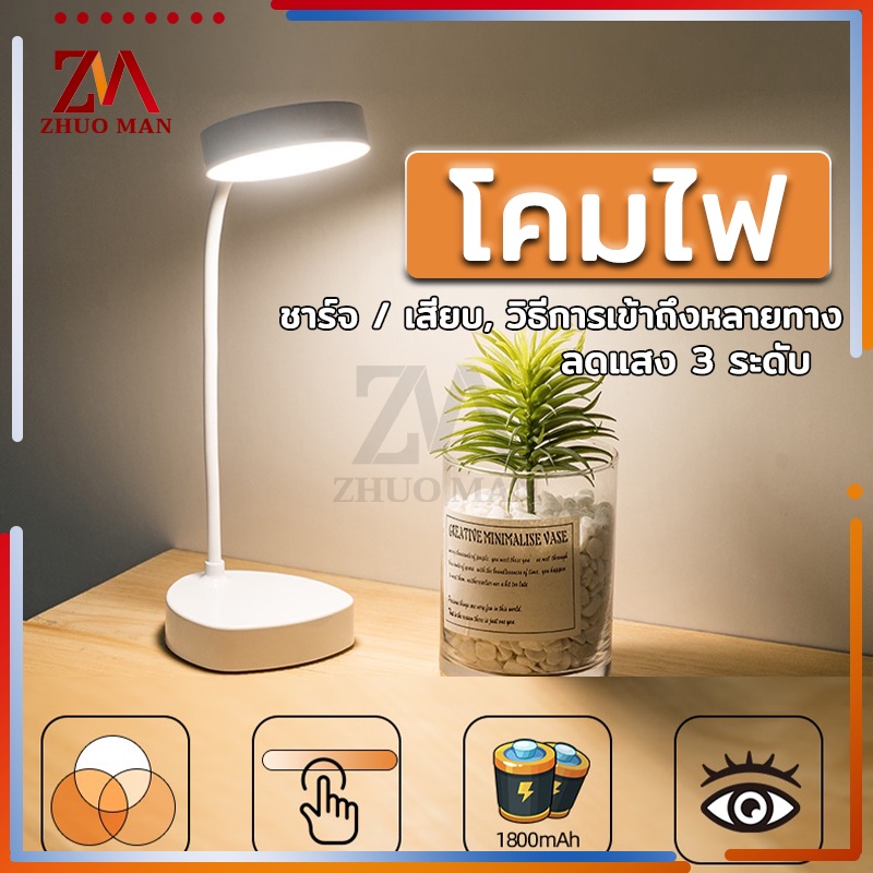 โคมไฟตั้งโต๊ะ โคมไฟหัวเตียง led ปรับโคมไฟอ่านหนังสือ แสงได้3สี พับเก็บได้