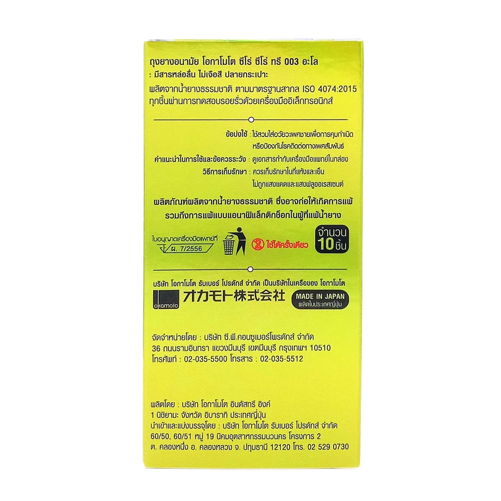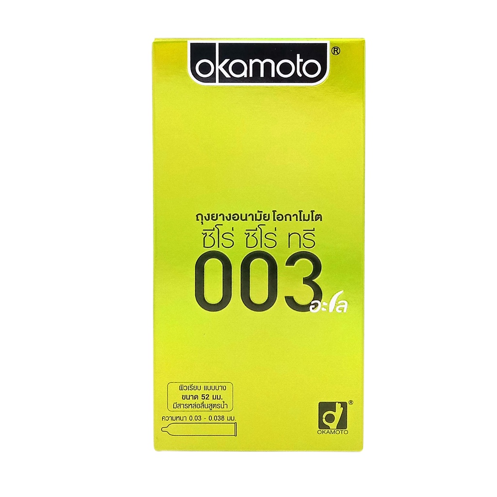 Okamoto ถุงยางอนามัย โอกาโมโต ซีโร่ ซีโร่ ทรี 003 อะโล บรรจุ 10 ชิ้น x 1 กล่อง