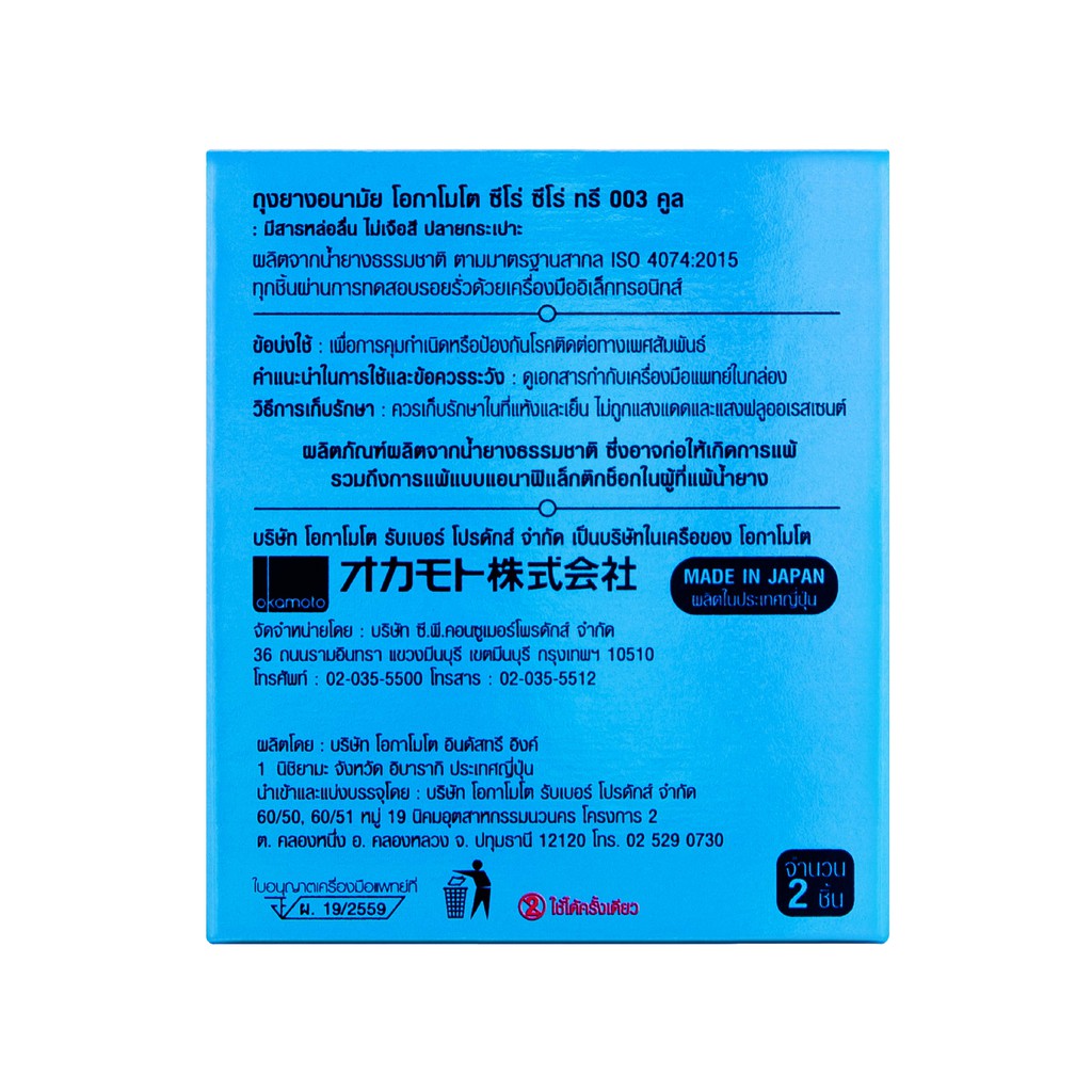 Okamoto ถุงยางอนามัย โอกาโมโต ซีโร่ ซีโร่ ทรี 003 คูล x 1