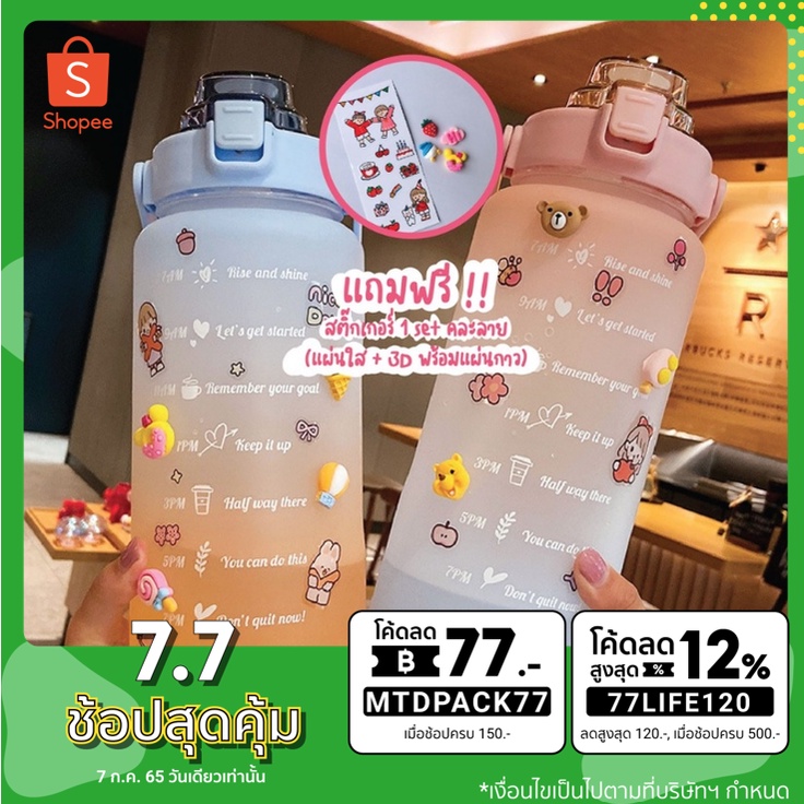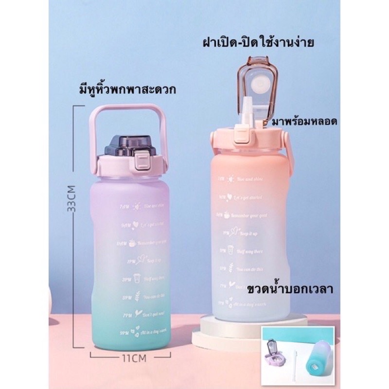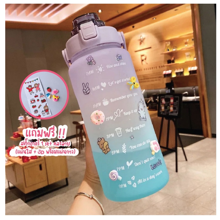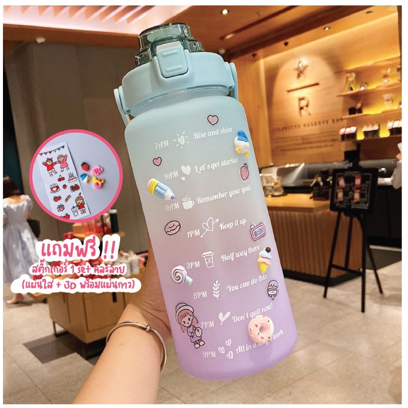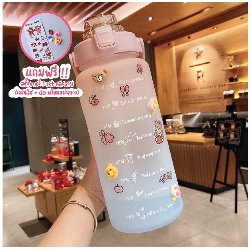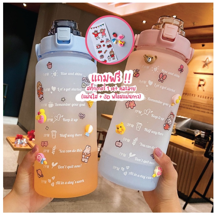 [8.8โค้ดส่งฟรีหน้าร้าน]🌟พร้อมส่ง🌟ขวดน้ำพลาสติกแบบพกพา ขวดน้ำสไตล์สปอร์ต🔥แถมฟรีสติ๊กเกอร์🔥2 ลิตร ของแท้พลาสติกหนามาก แข็ง