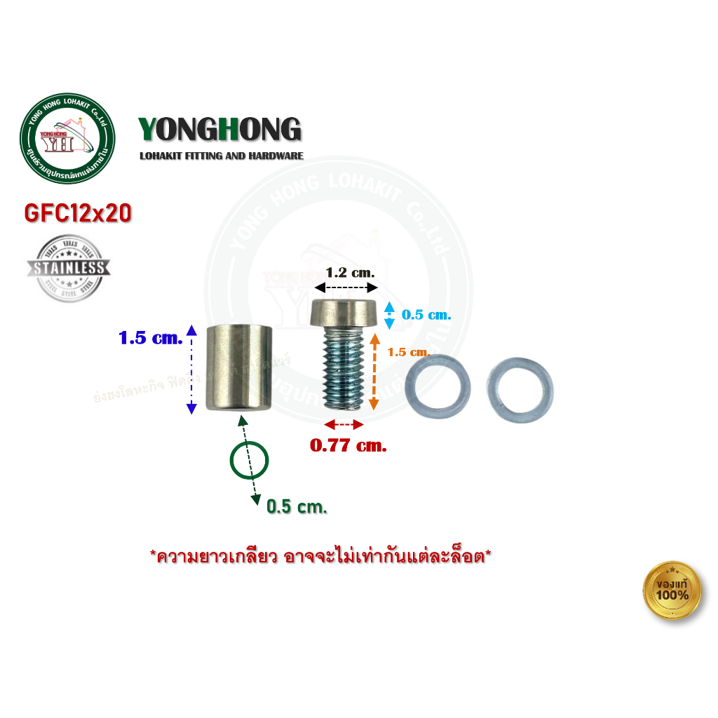 หมุดยึดกระจก อะคิลิค สแตนเลส หมุดยึดผนังลอย มีหลายขนาด บรรจุ 1 ชิ้น