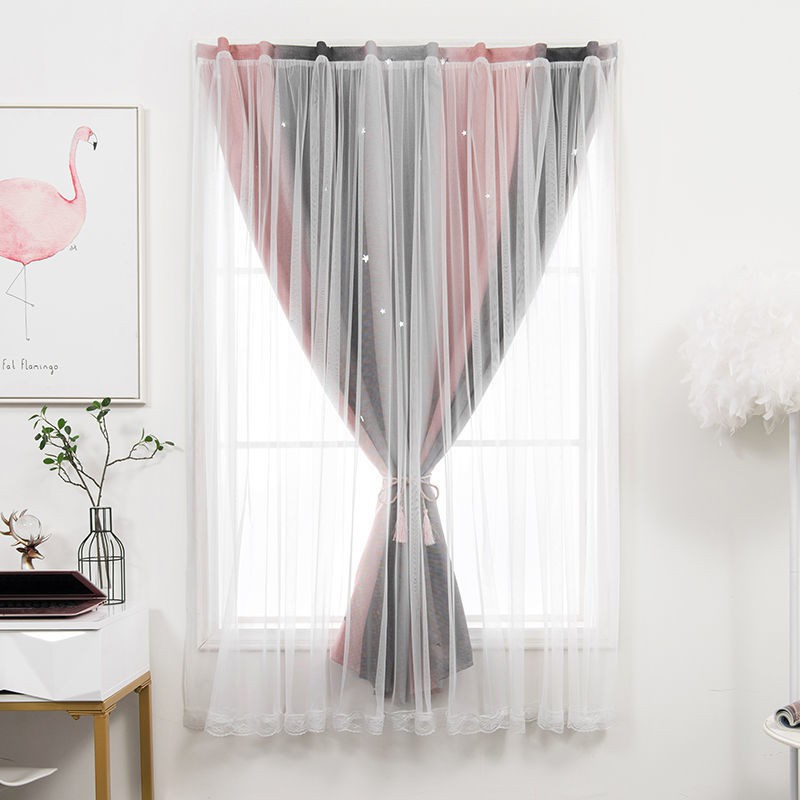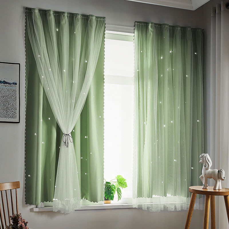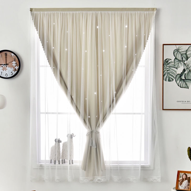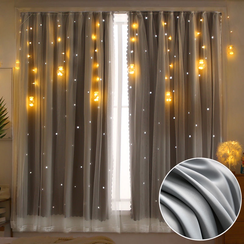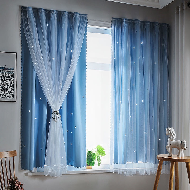 ผ้าม่านตีนตุ๊กแก UV ผ้าม่านกันแสง กันแสง ลายดาว สำเร็จรูป ติดแบบตีนตุ๊กแก จำนวน 1ผืน