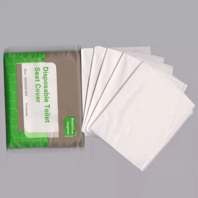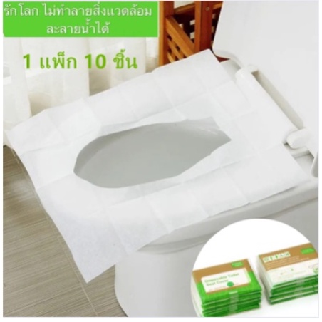 กระดาษรองนั่ง วางบนฝารองนั่งชักโครกในห้องน้ำ แผ่นรองนั่งชักโครก แบบพกพา 1แพ็ค 10ชิ้น Disposable Toilet Seat วางบนฝารองน