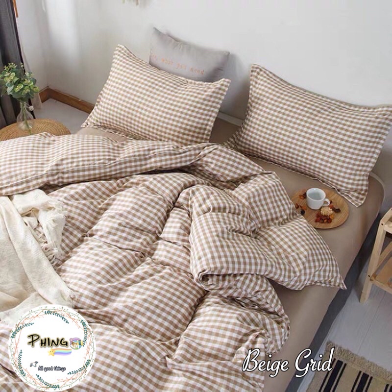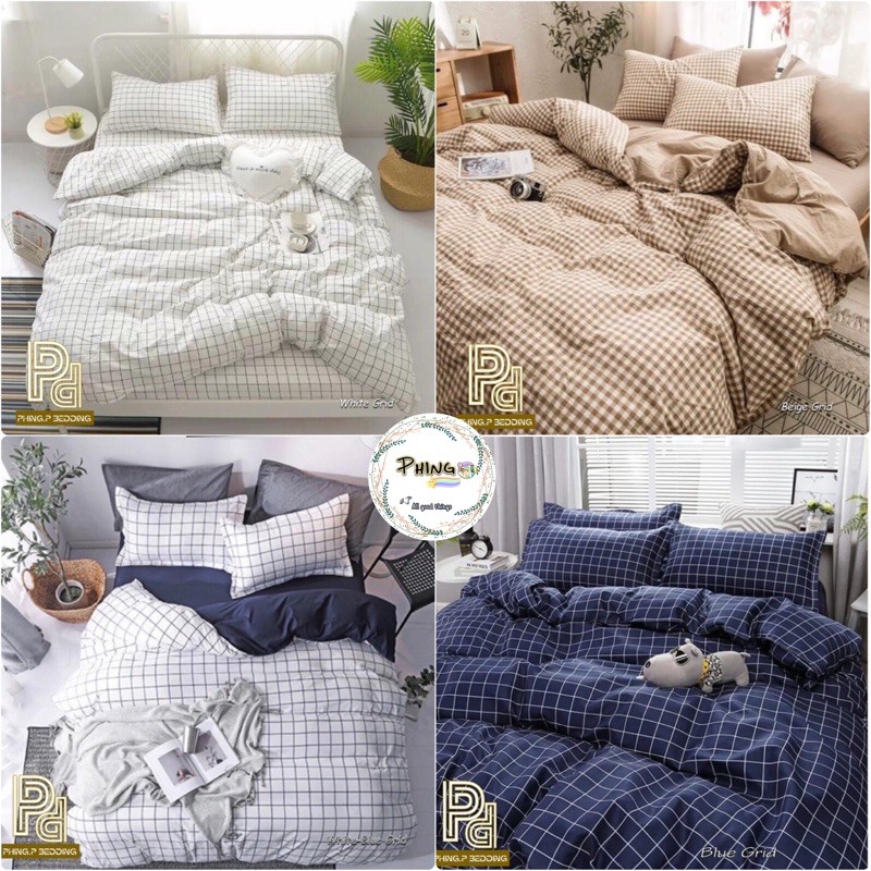 🚚🛌 #ชุดเครื่องนอนพร้อมผ้านวมครบเซต 6 ชิ้น(#ผ้านวม+#ผ้าปูที่นอน+ปลอกหมอน) #ลายสก๊อต #ผ้าปที่นอนสีพื้น#สไตล์มินิมอล