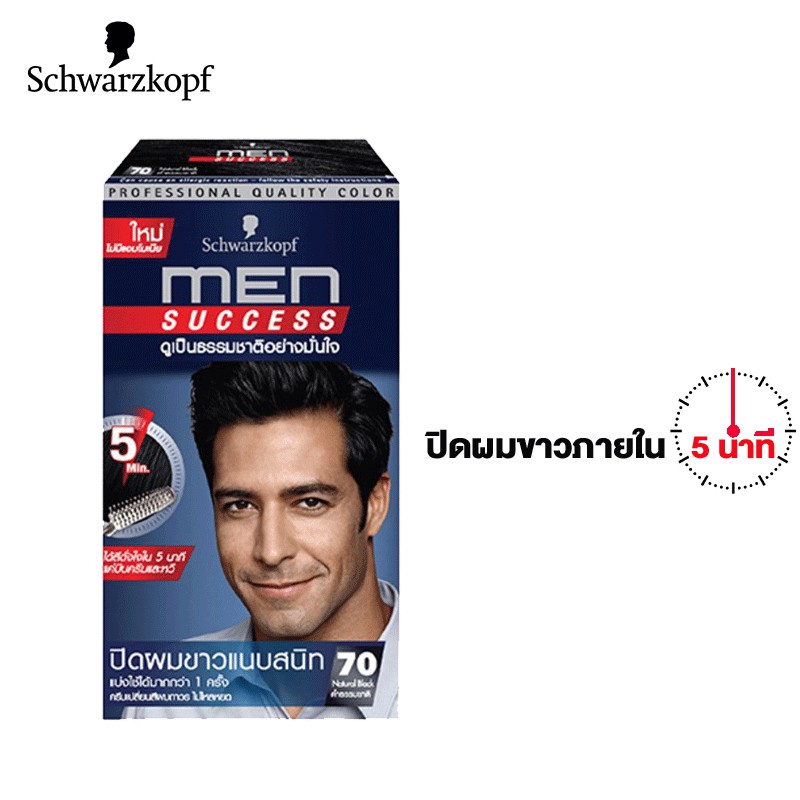 Schwarzkopf MEN SUCCESS 70 Natural Black ครีมเปลี่ยนสีผม สี 70 ดำธรรมชาติ 1 กล่อง ครีมปิดผมขาว ปิดผมขาว