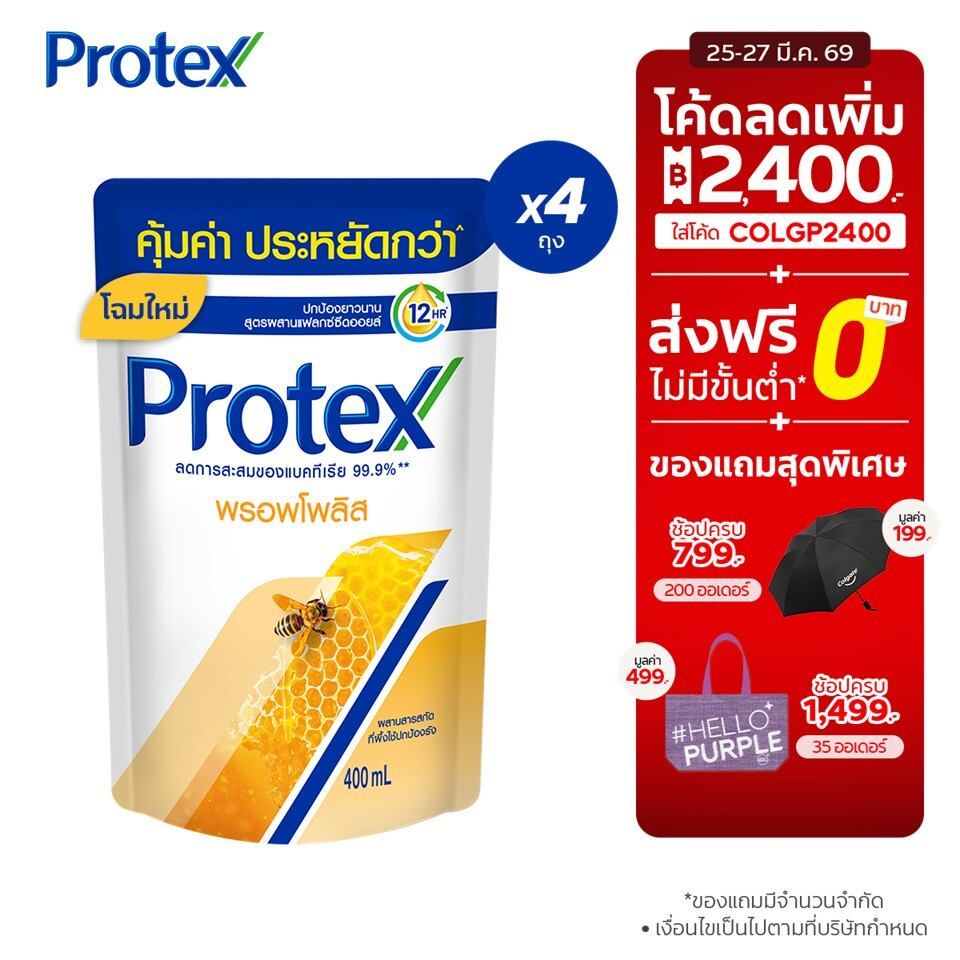 [มี 5 สูตรให้เลือก] ครีมอาบน้ำ โพรเทคส์ ถุงเติม 400 มล. 4 ถุง Protex Liquid Soap Refill 400ml x4