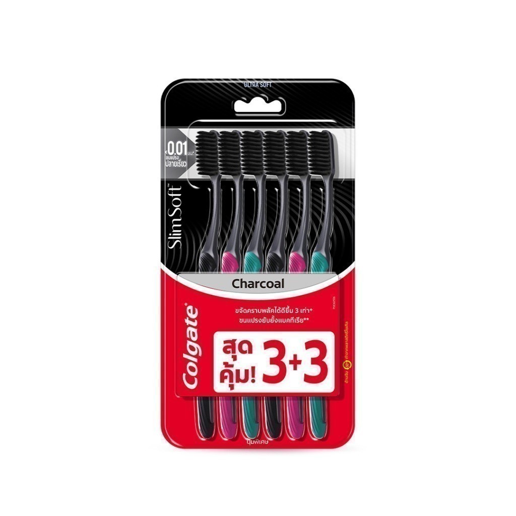 [มี 4 แพ็คให้เลือก] แปรงสีฟัน คอลเกต สลิมซอฟท์ ชาร์โคล (คละสี) Colgate Slim Soft Charcoal Toothbrush (mixed color)