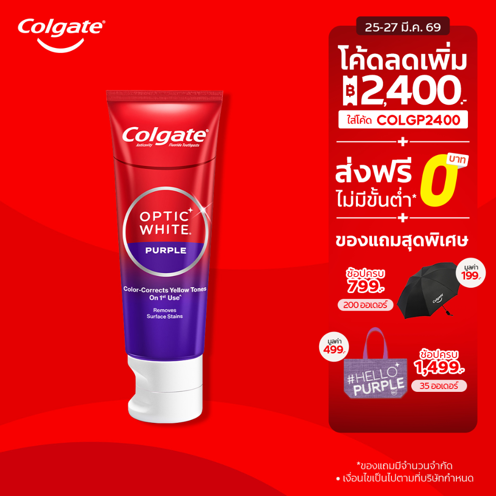 [มี 4 แพ็คให้เลือก] ยาสีฟัน คอลเกต อ๊อพติค ไวท์ เพอร์เพิล 100 กรัม Colgate Optic White Purple 100g