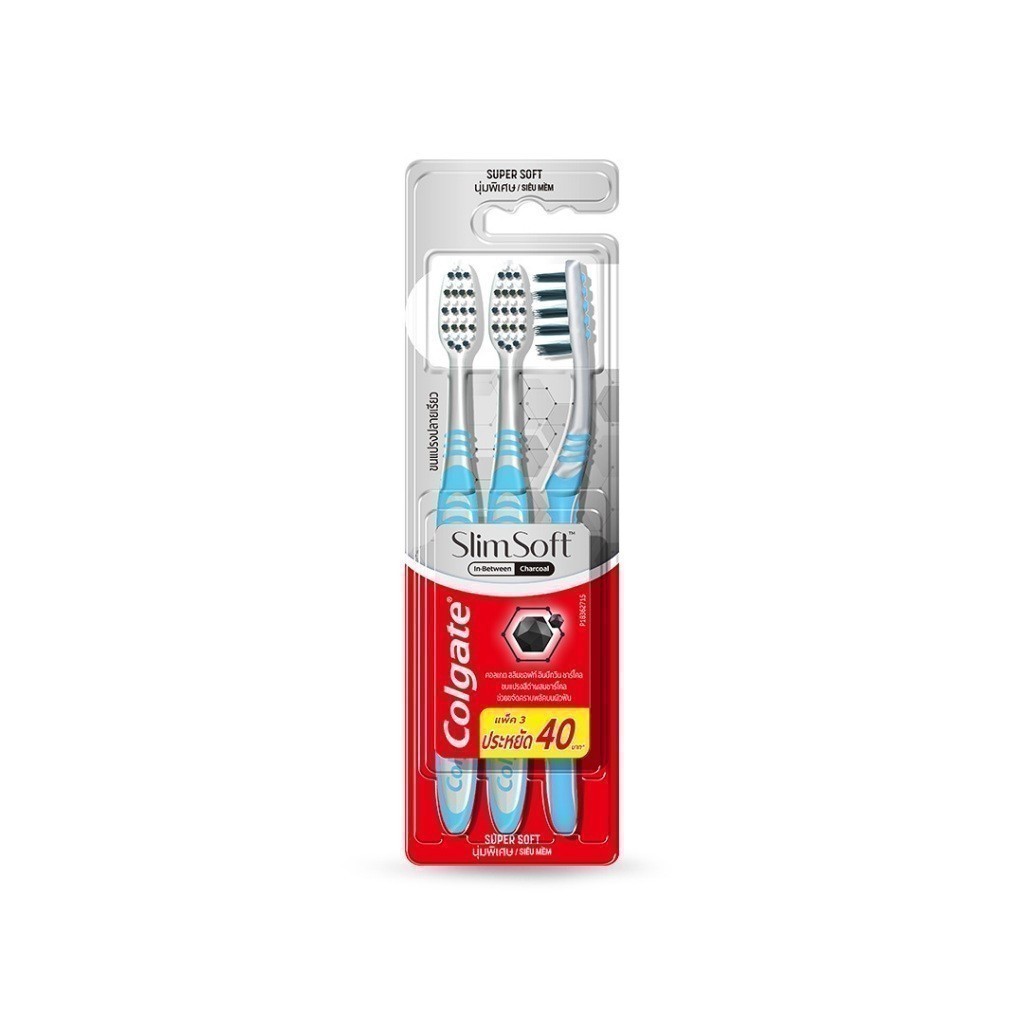 [มี 2 แพ็คให้เลือก] แปรงสีฟัน คอลเกต สลิม ซอฟท์ อิน บีทวีน คลีน ชาร์โคล (คละสี) Slim Soft In Between Clean Charcoal