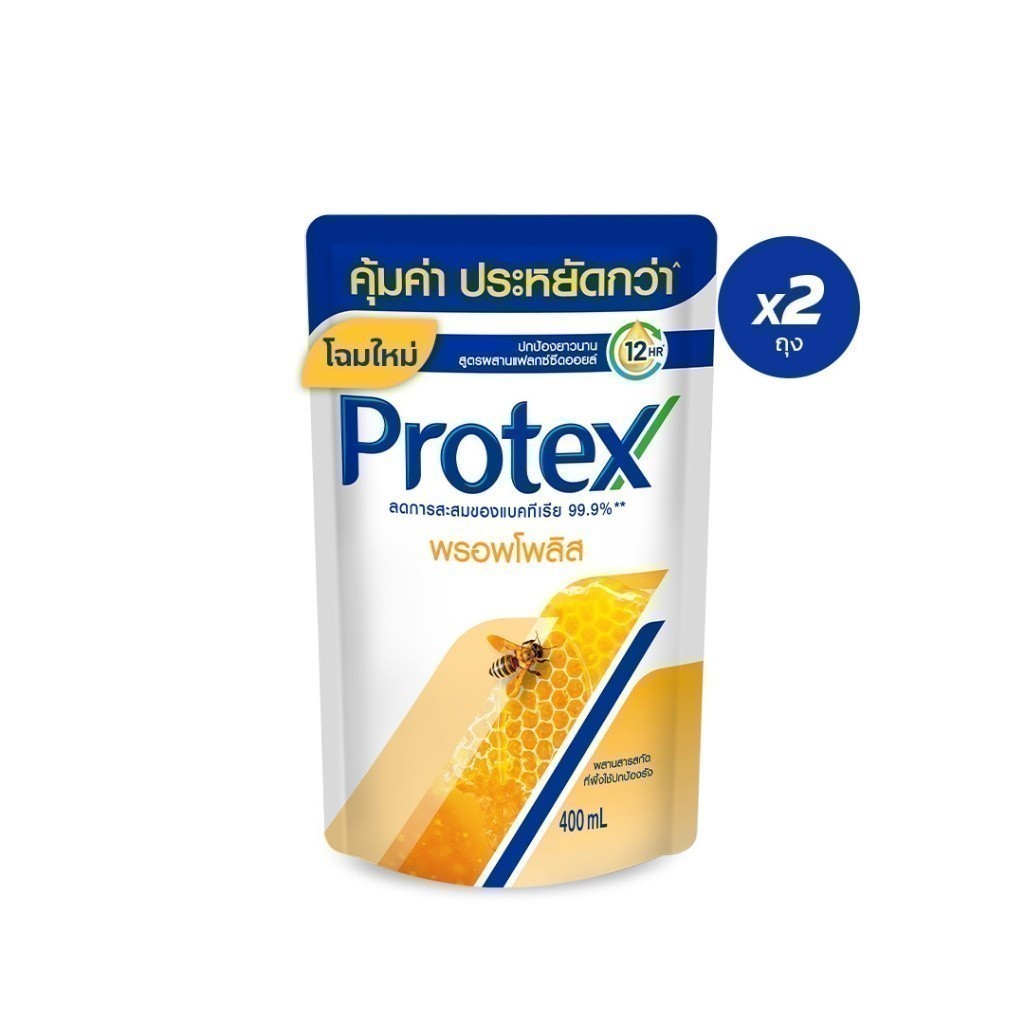 [มี 3 แพ็คให้เลือก] ครีมอาบน้ำโพรเทคส์ พรอพโพลิส ถุงเติม 400 มล. Protex Propolis Shower Cream 400 ml Refill
