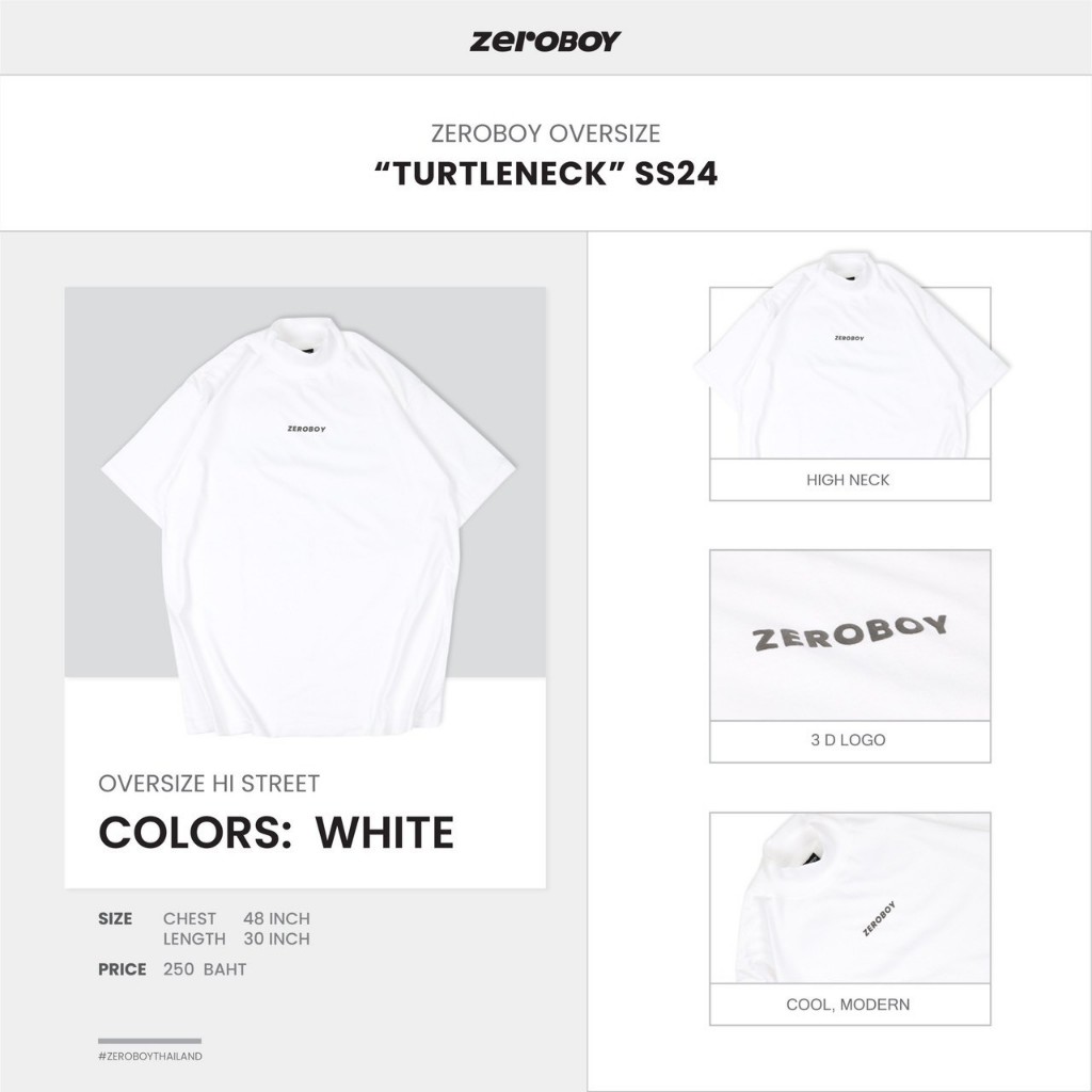 ZEROBOY - OVERSIZE “Turtleneck” เสื้อยืดคอสูง รุ่นสกรีนนูน