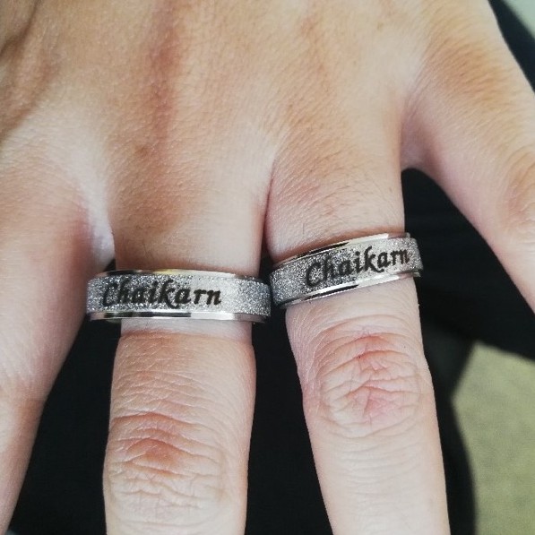 (มีโค้ดลดเพิ่ม)แหวนสลักชื่อตามสั่งพ่นทราย(ทักเเชตก่อนกดสั่งซื้อนะคะ)