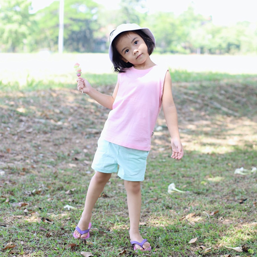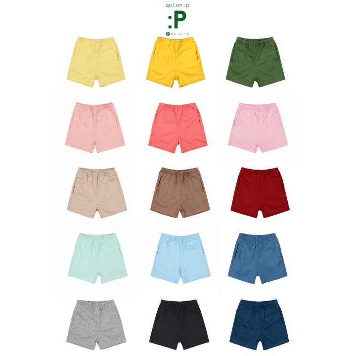 QolonP (:P) โคล อนพี "ขาสั้น"(1-5 ขวบ) (S,M,L) กางเกงเด็ก มีกระเป๋า 2 ข้าง สีพื้น คอตต้อน 100% เนื้อ Comb 32