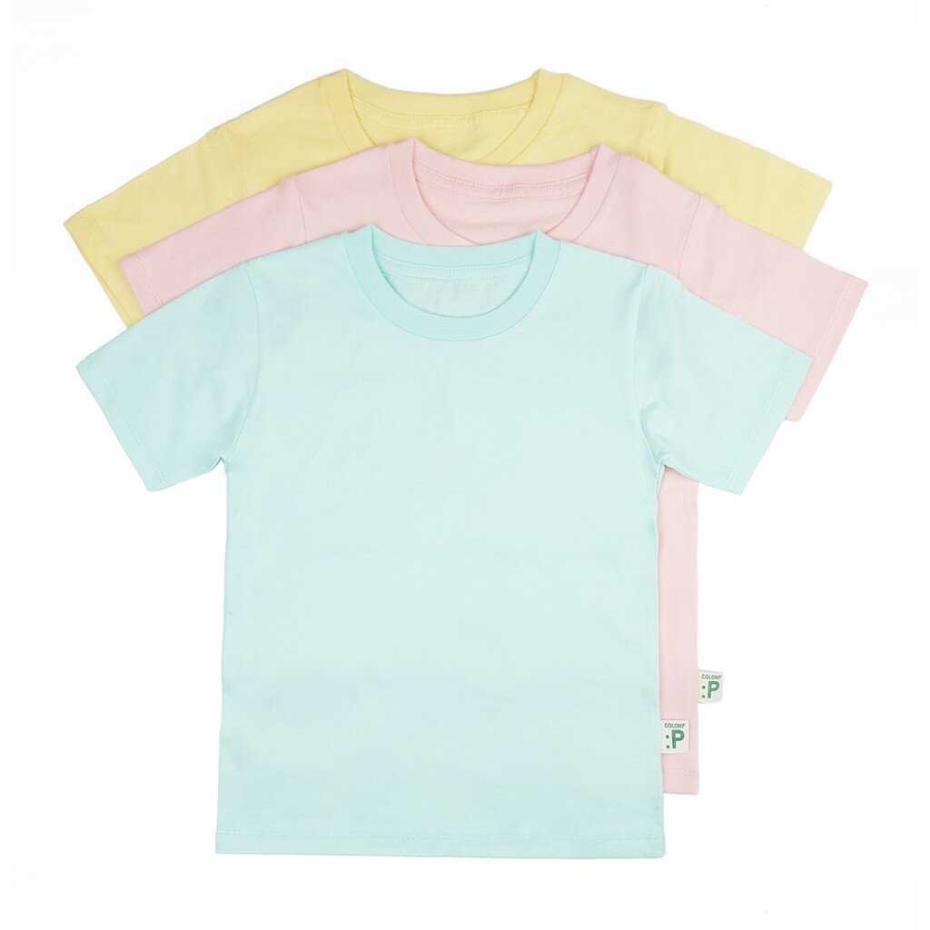 QolonP (:P) โคล อนพี "คอกลม" (1-5 ขวบ) (S,M,L) เสื้อผ้าเด็ก เสื้อยืดเด็ก สีพื้น คอตต้อน 100%#32
