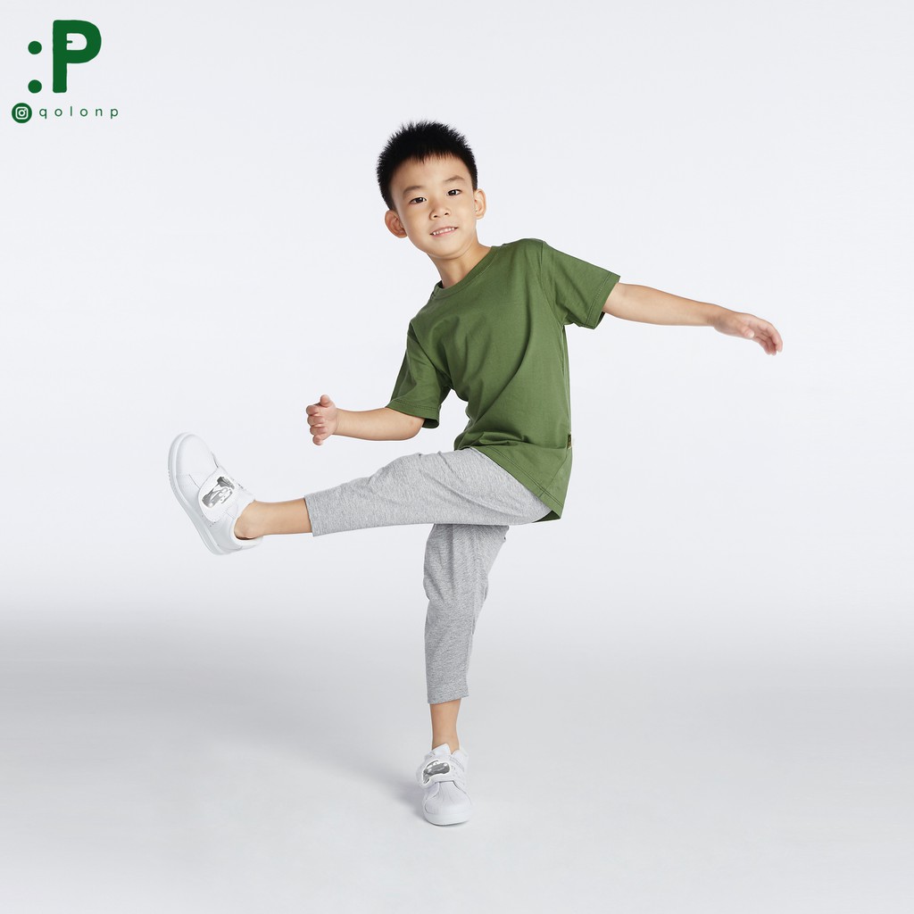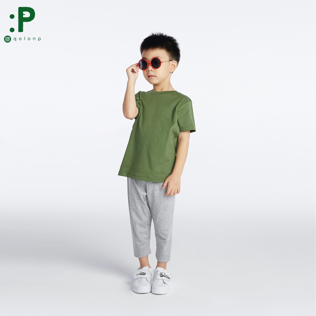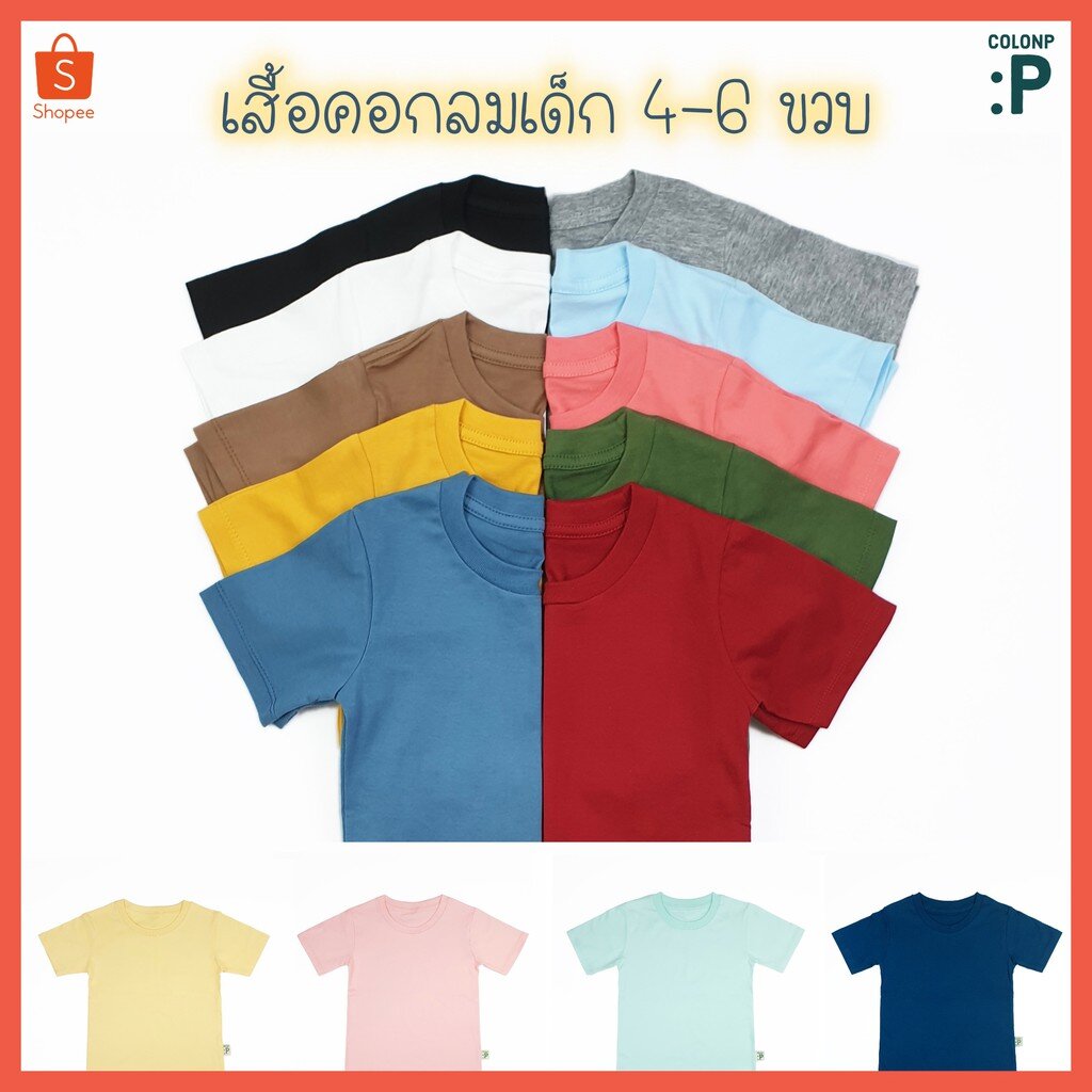 QolonP (:P) โคล อนพี "คอกลม" (4-7 ขวบ) (XL,XXL) เสื้อผ้าเด็ก เสื้อยืดเด็ก สีพื้น Cotton 100% เนื้อ Comb #32